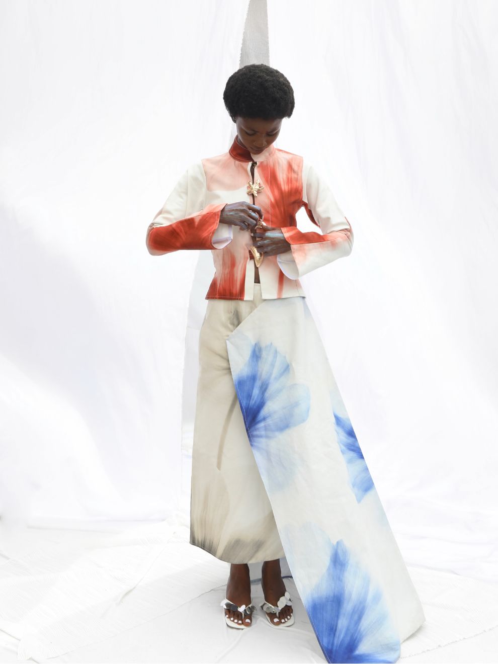 Launched in 2011, Lagos-based men’s and womenswear label Orange Culture creates silhouettes with unexpected twists and employs artisanal techniques, native to the Yoruba community, into his textiles. A former LVMH Prize and Woolmark Prize semi-finalist, his daring and gender non-conforming approach to design has built him a global cult following.
