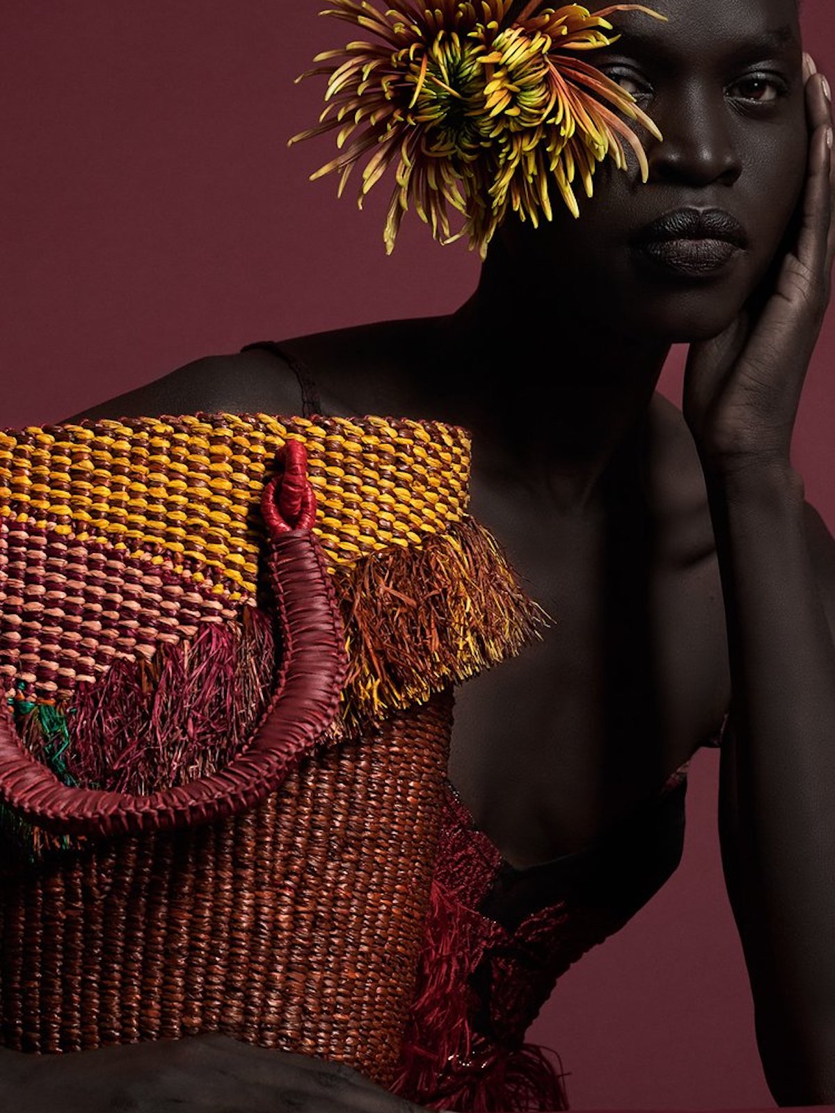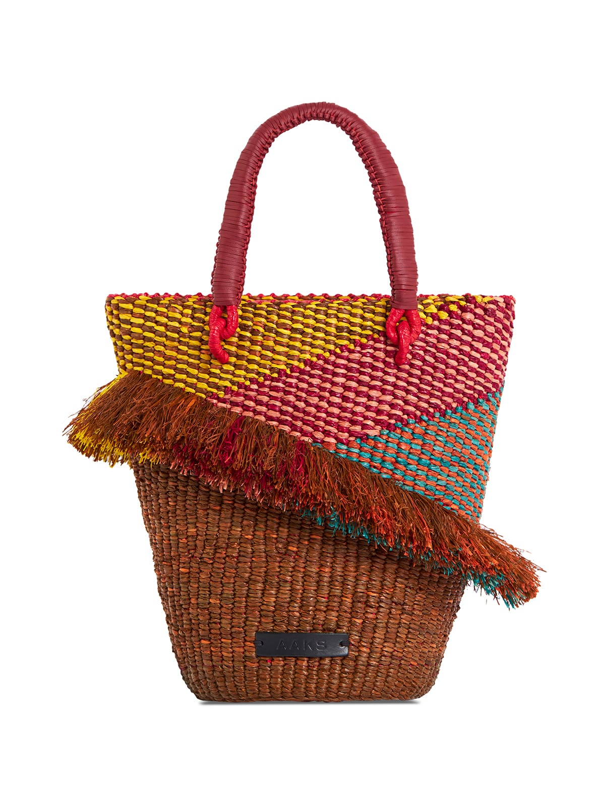 AAKS was founded by Ghanaian designer Akosua Afriyie-Kumi with the intention of introducing the traditional weaving techniques she remembers from childhood to an international audience. Each piece is crafted into contemporary silhouettes with locally sourced raffia—the exuberant colors capturing the spirited essence of the brand.