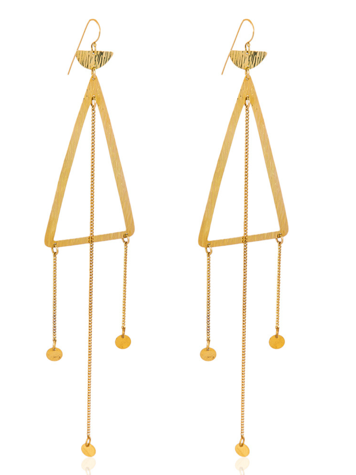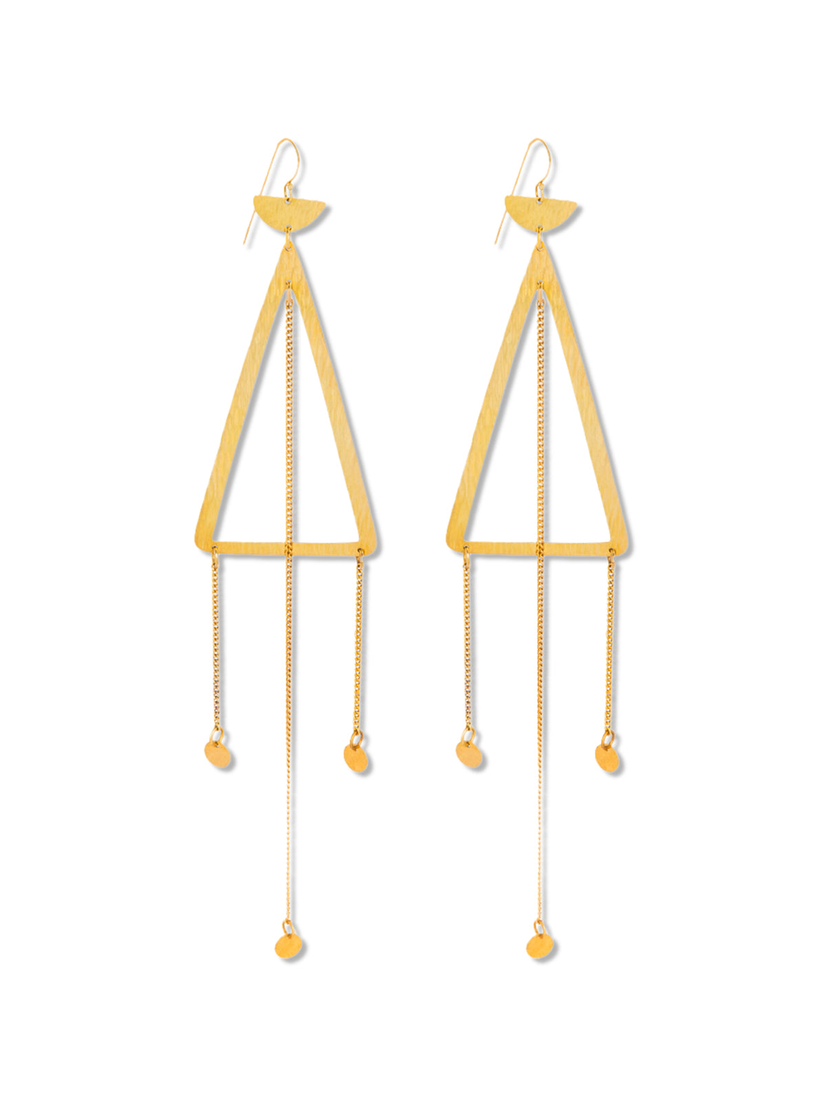 Adele Dejak’s Zaafira collection shines a spotlight on cascading shoulder-grazing earrings, as showcased by this Afro-Fei design. Lovingly handcrafted in Nairobi, Kenya, by the brand’s skilled artisans, they’re cast from 24k gold-plated recycled brass in a triangular shape with dangling pendants that catch the light with every step. The perfect hero piece for both daywear and after-dark dressing.