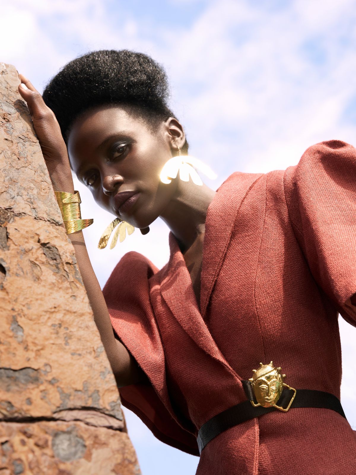 Born in Nigeria and now based in Nairobi, Adele Dejak’s namesake jewelry brand draws inspiration from a variety of African and European cultural influences. Each piece is expertly handcrafted out of recycled materials, with her statement-making aesthetic extending to daring neckpieces and elegant earrings with sculptural silhouettes.