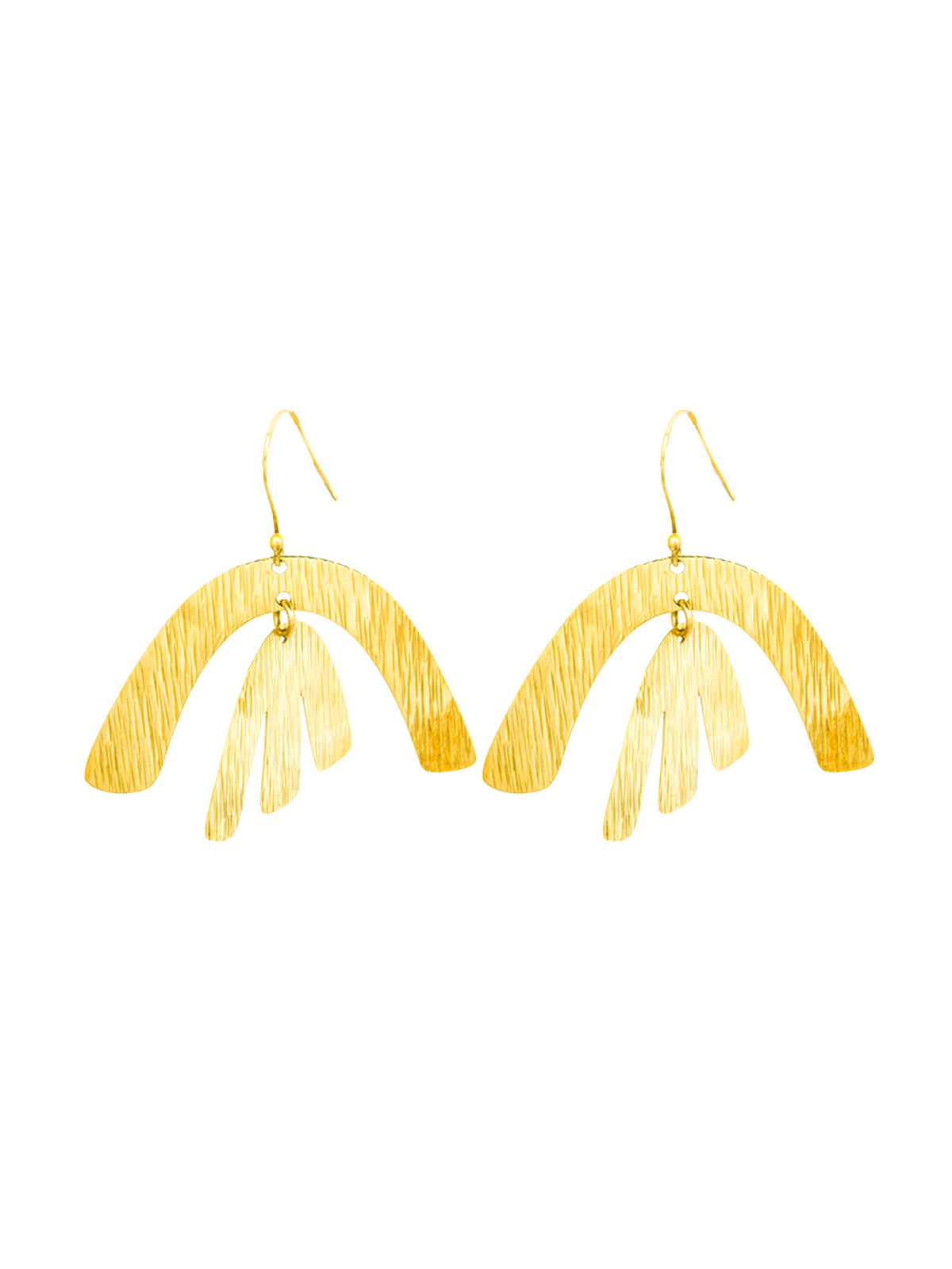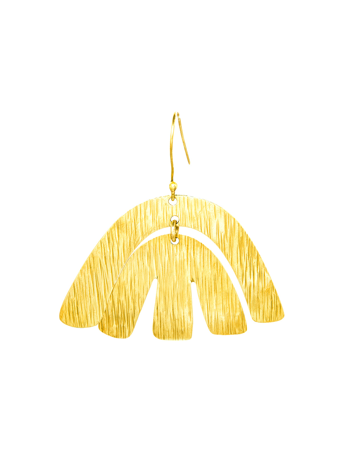 Dhamani is Swahili for precious: it's easy to understand where the name for these earrings derived from. Made out of upcycled hammered brass in a shape inspired by traditional African wood carvings, the articulated parts move gracefully with the wearer. Exuding contemporary elegance, these earrings will elevate a simple t-shirt and jeans look.