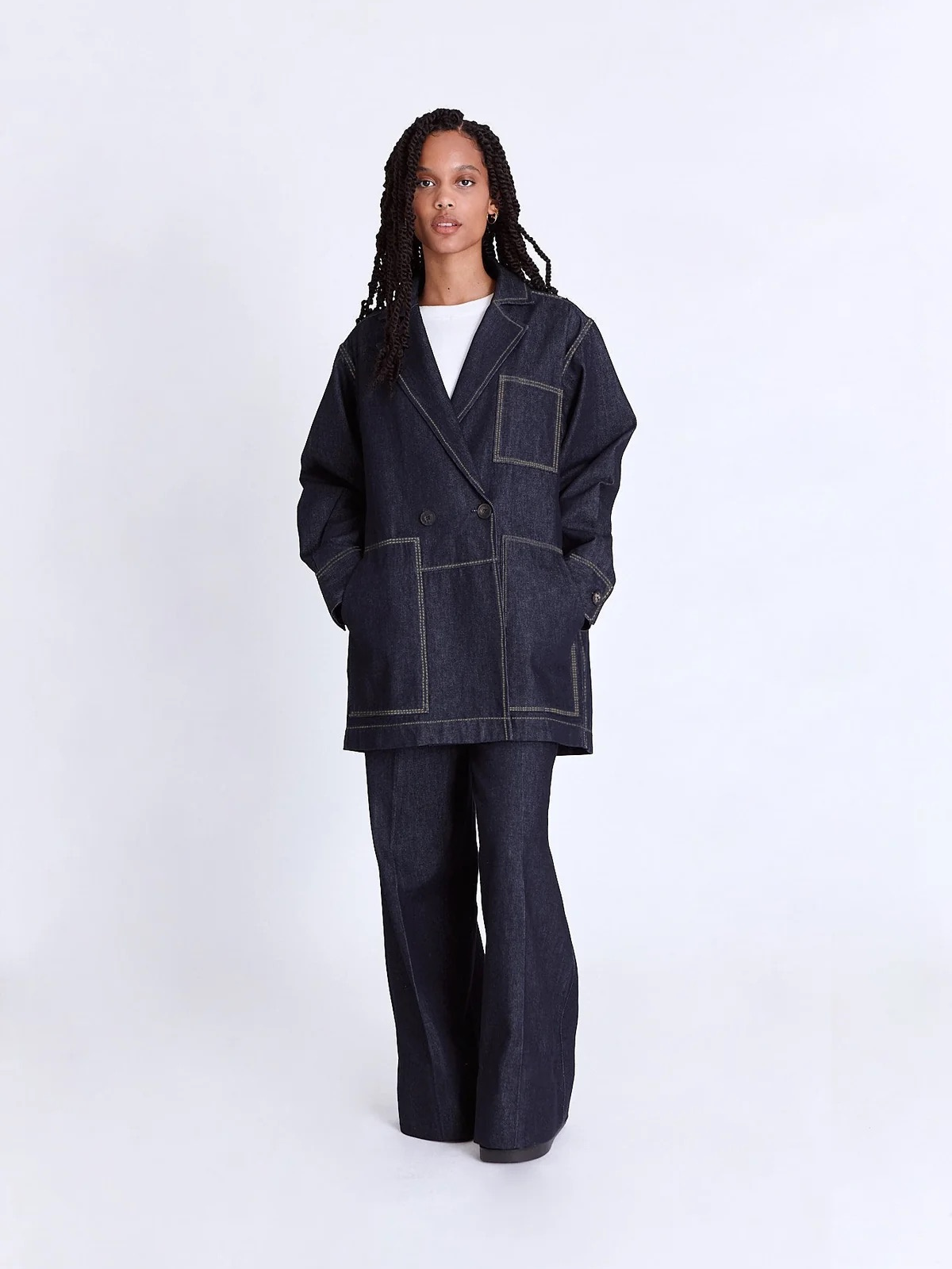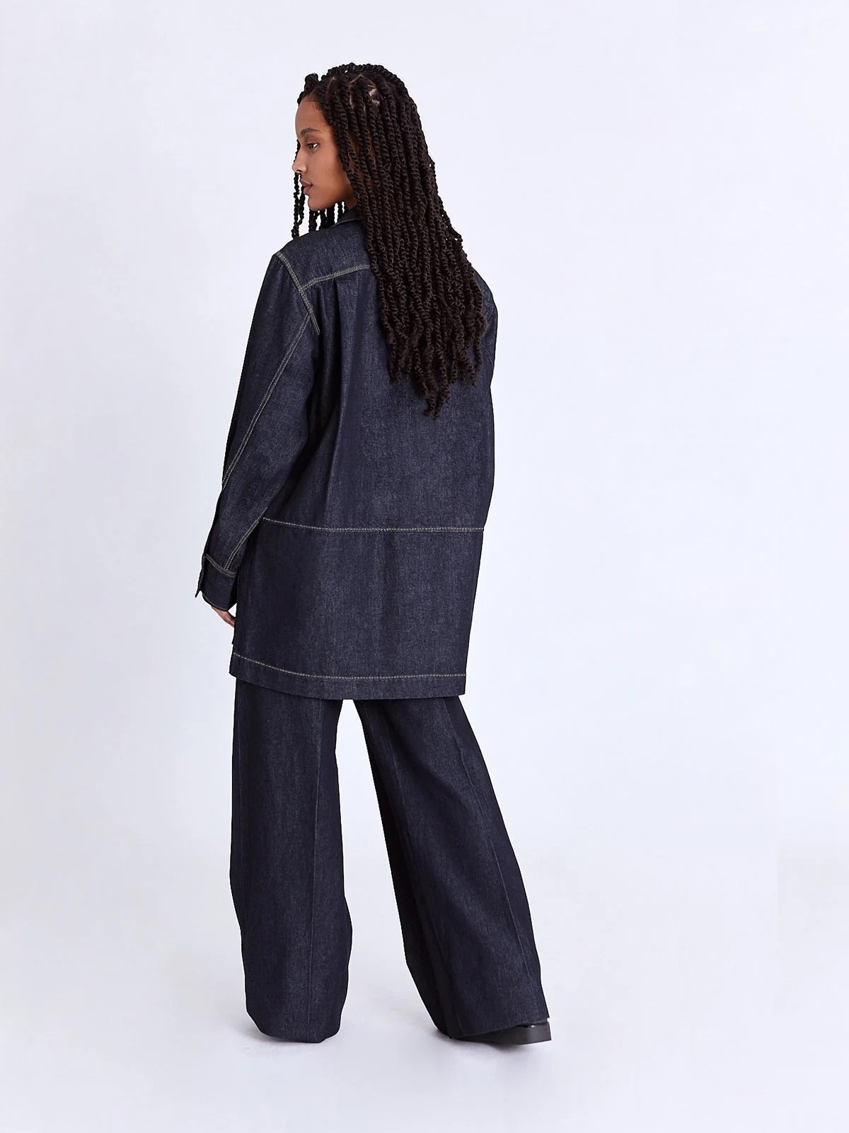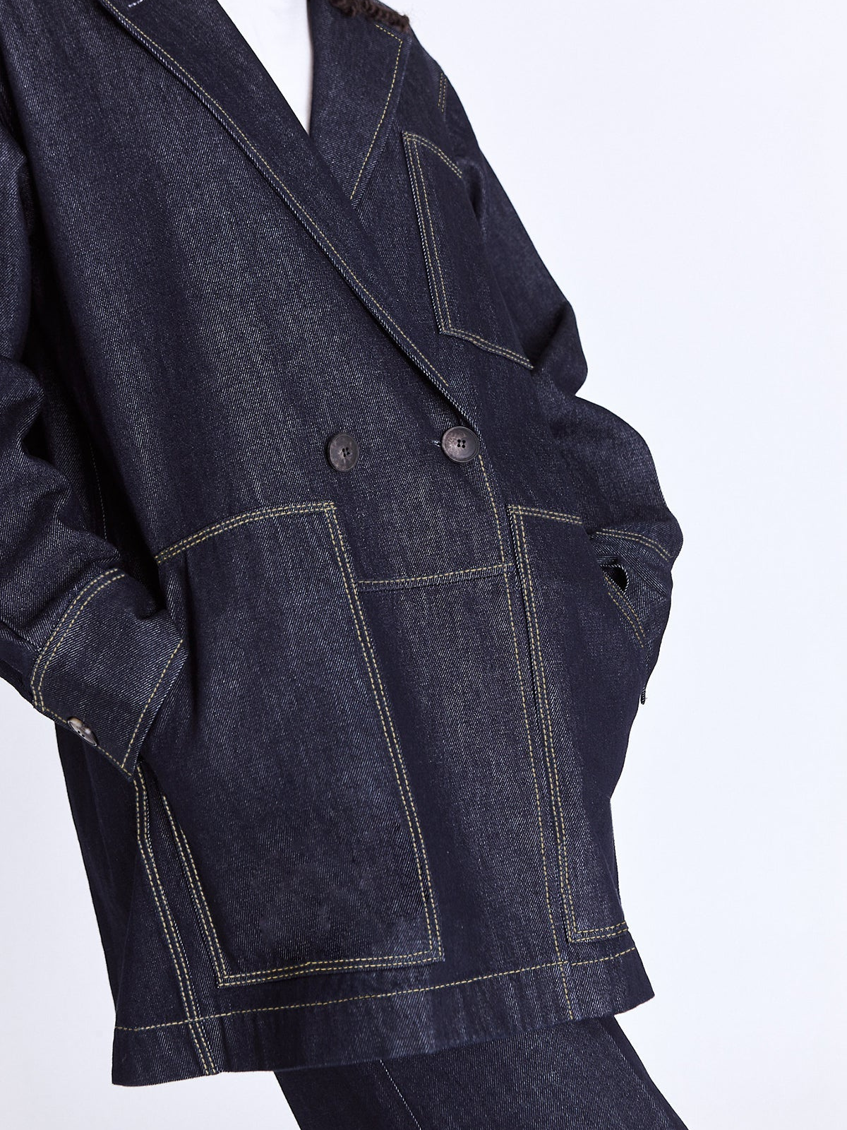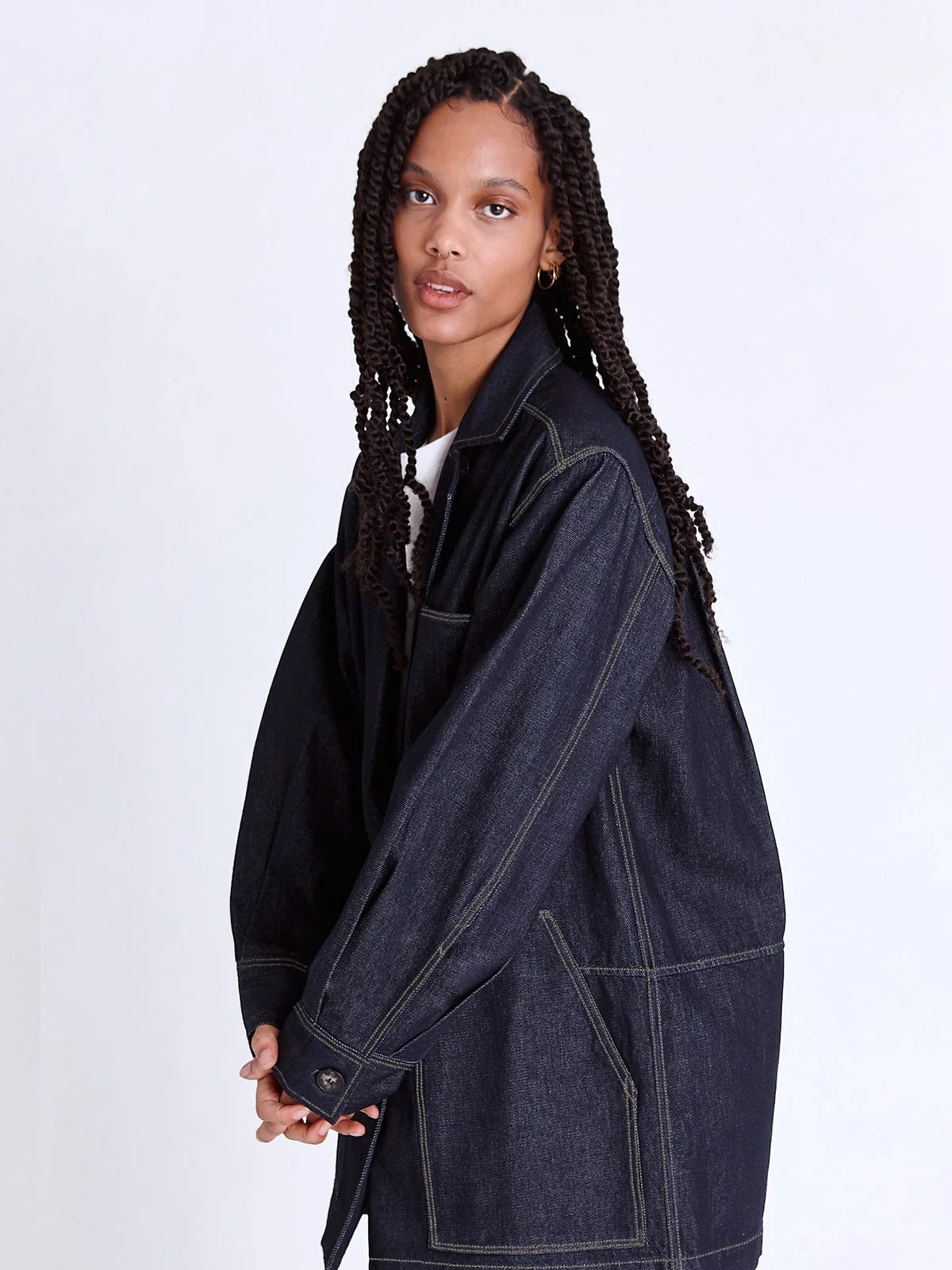 id !== 1) : openAccordions.push(1)"> Insider NotesThe Raha Denim Jacket brings a laid-back yet sophisticated touch to your workwear collection, featuring real horn buttons and an oversized fit for a modern edge. With practical front patch pockets and a fully functional closure, this unlined jacket effortlessly blends style and functionality. Layer it over a tailored shirt and wide-leg trousers for a polished look that balances comfort with contemporary flair.