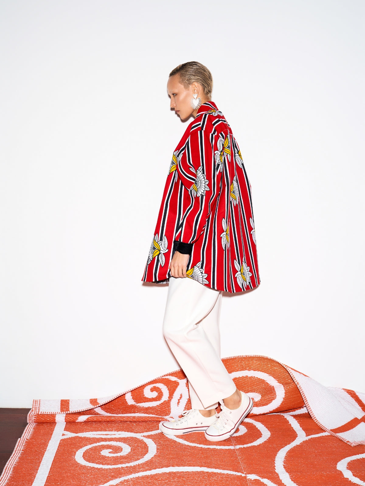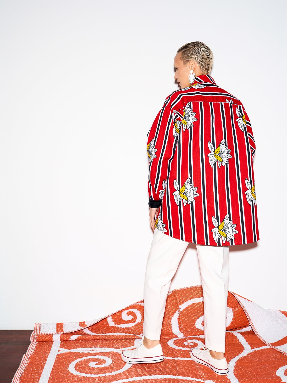 A bold take on classic shirting, the Bahati Shirt by Zanzibari label Doreen Mashika channels the designer's Tanzanian heritage. It's cut from matte satin Bemberg for an oversized fit and decorated with a vibrant motif of delicate blooms layered over vertical stripes. A half yoke detail imparts subtle dimension to the front, while velvet-trimmed cuffs add a hint of tactile contrast. Wear yours with everything from tailored pants to flowing skirts.