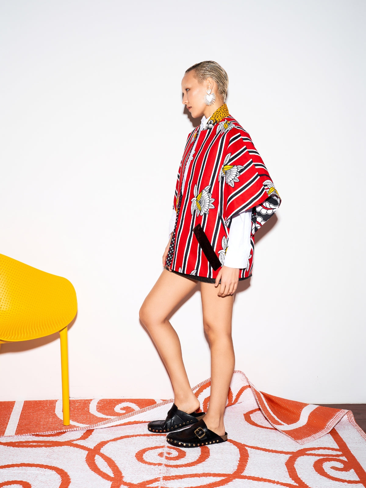 Tanzanian label Doreen Mashika blends cultural heritage with contemporary design, crafting each piece with an emphasis on East African tradition. Effortlessly versatile, the Hapotena Cover-Up boasts a reversible construction and artful prints. Cut from matte satin Bemberg, the oversized silhouette features a clean open front, diagonal welt pockets, and a refined band collar. Flip it to reveal a contrasting print, depending on your mood or styling needs.