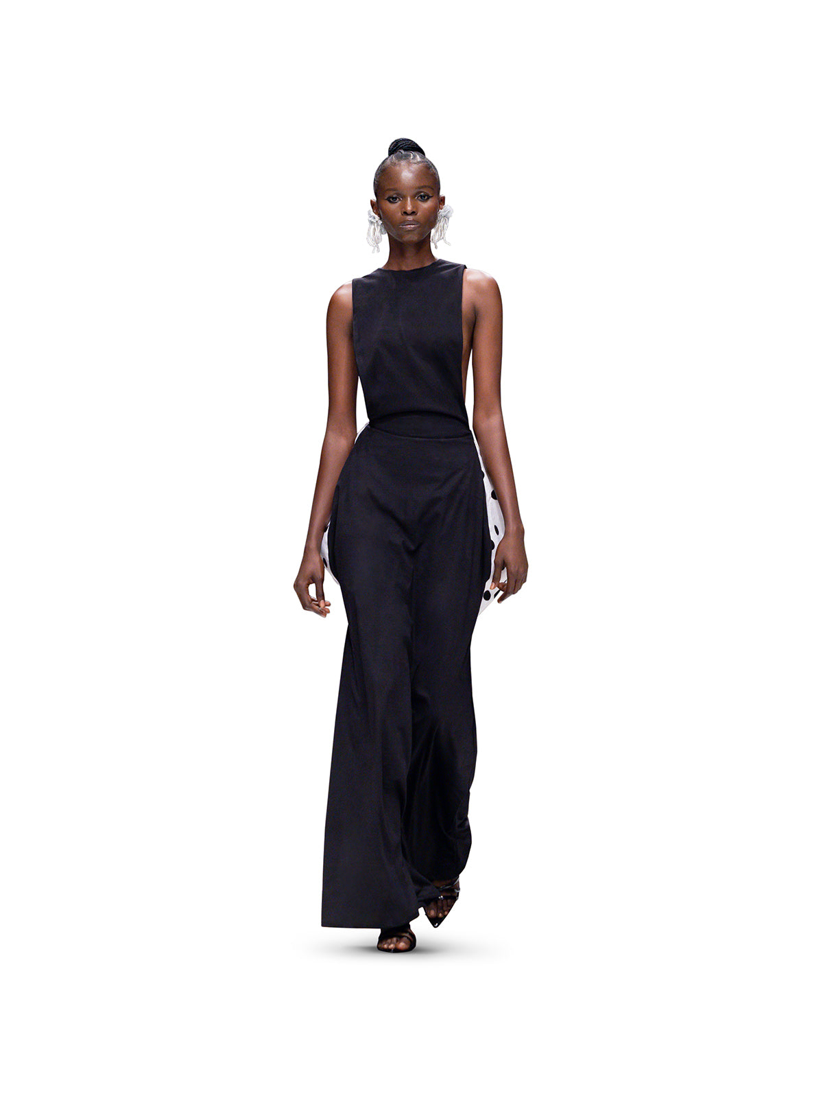Sensuality meets structure in the Side Cut Dress. The round-neck silhouette features panelled seams that sculpt the body, a cocoon-like drape around the hips, and an open back detailed with adjustable straps. Crafted from suede, it offers both tactile richness and contemporary restraint. Pair with strappy heels and metallic jewelry for minimalist allure.