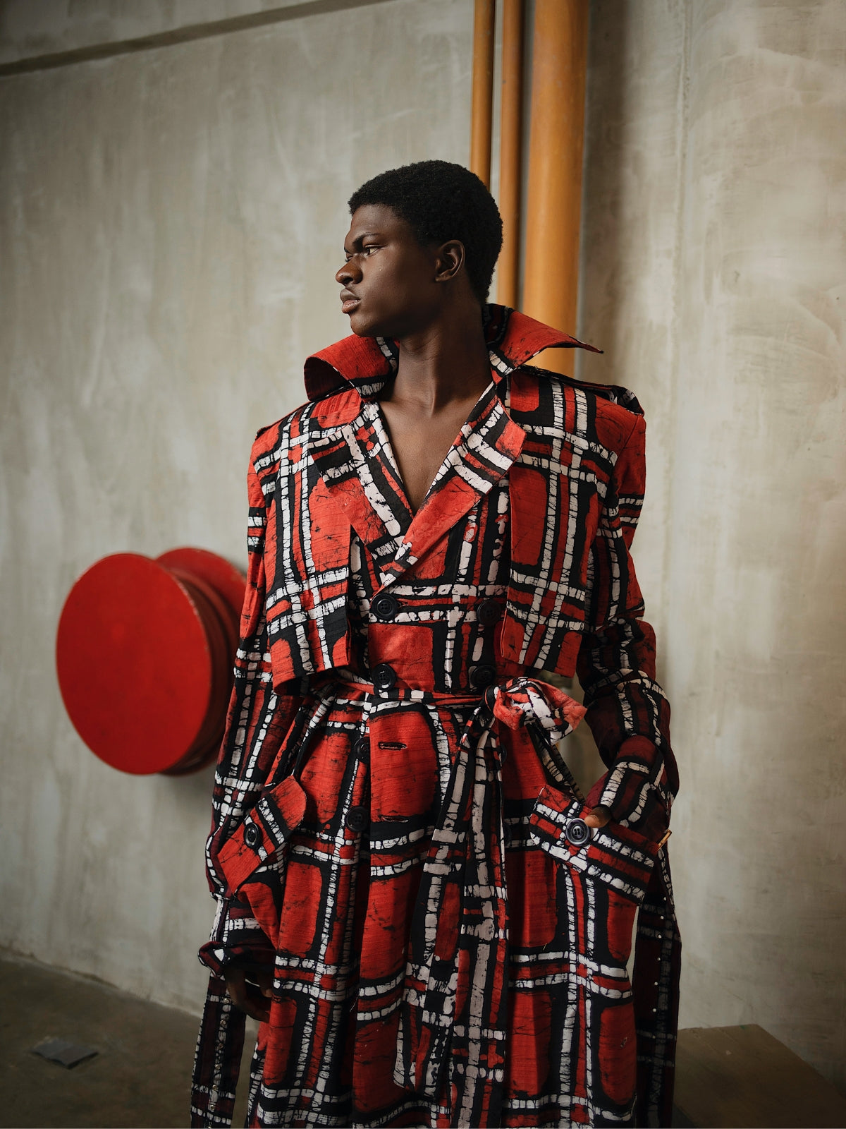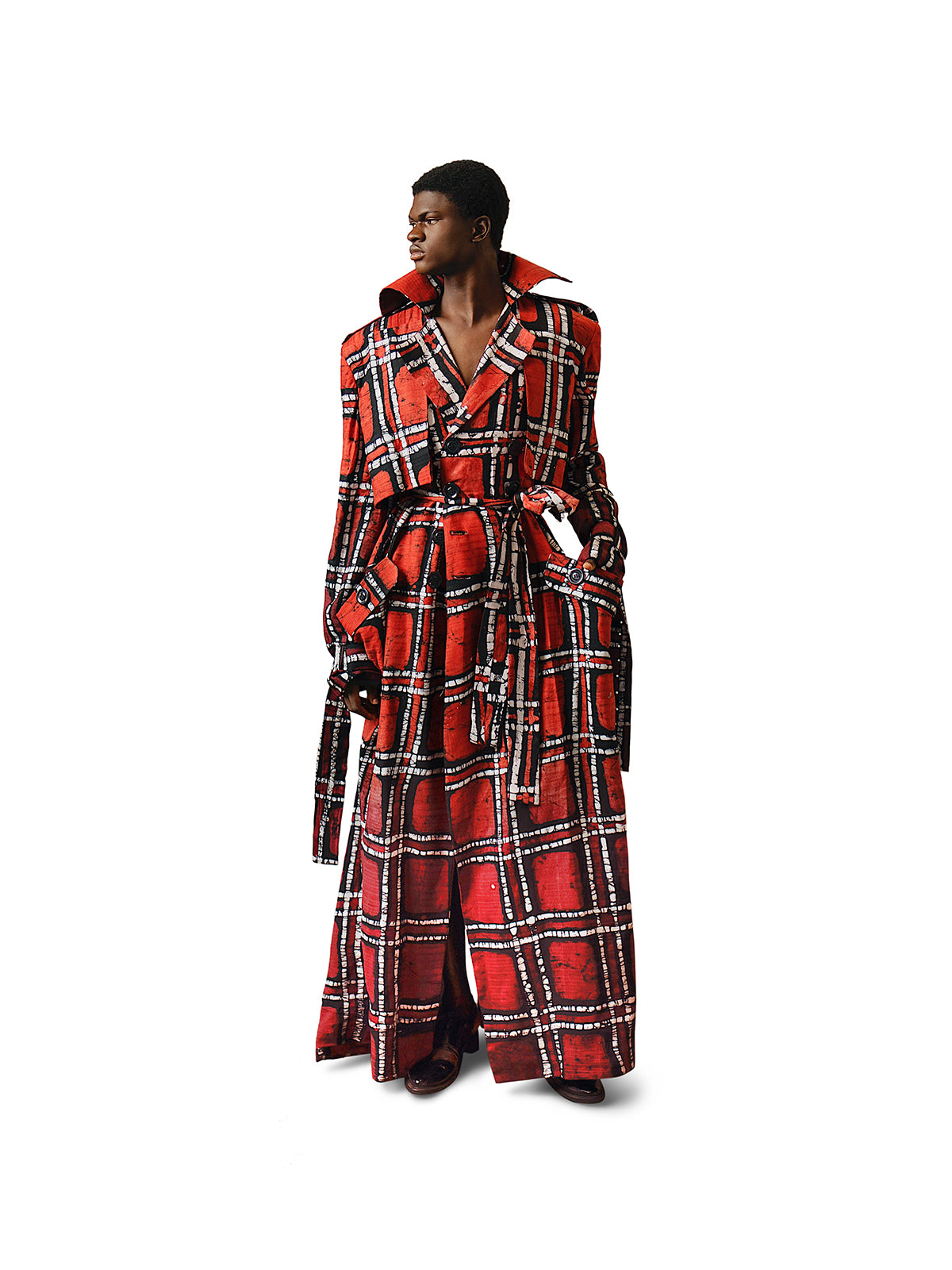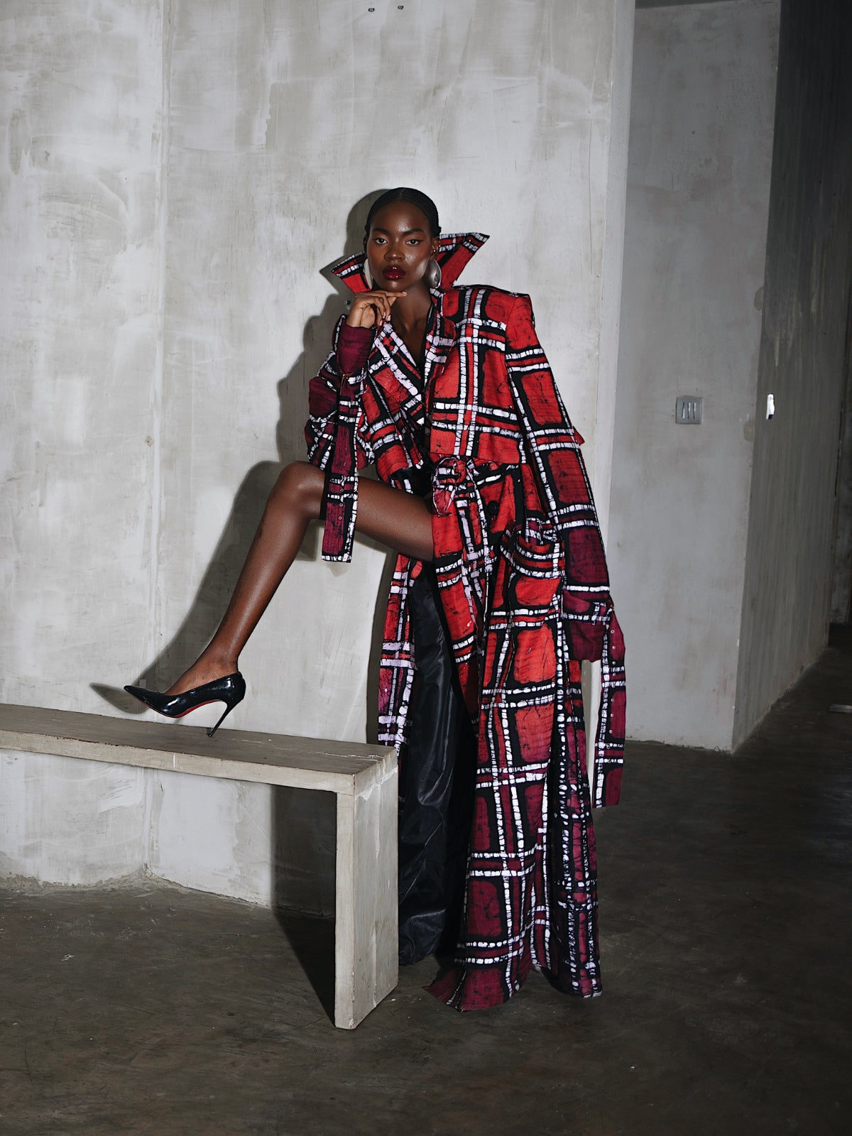 Fruché’s latest collection promises unique and unexpected twists on wardrobe staples. This Lee Trench is crafted in Nigeria from traditional Adire cotton, hand-dyed in a custom tartan pattern designed by the brand’s founder and creative director, Frank Aghuno. A nod to heritage with a contemporary edge—the floor-length silhouette features a tailored fit and classic detailing, including double-breasted buttons, storm flaps, and a waist belt. Buy now, cherish forever.