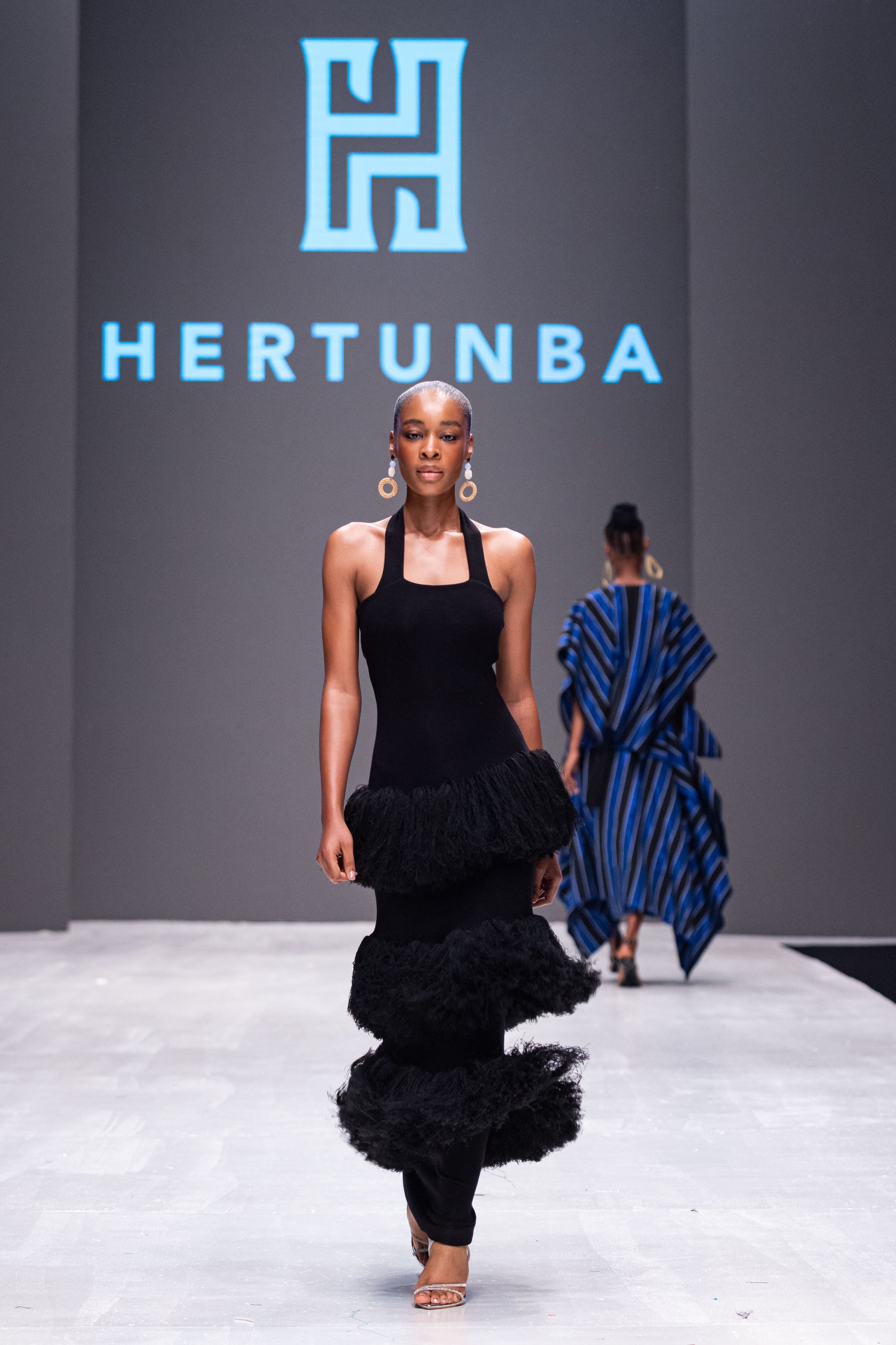 From her Lagos atelier, Florentina Agu's Hertunba elevates traditional weaving like aso-oke through innovative textile manipulation. The brand's signature interlaced geometric patterns and dimensional surfaces showcase the precision of women artisans, where recycled materials transform into architectural statements of modern luxury.