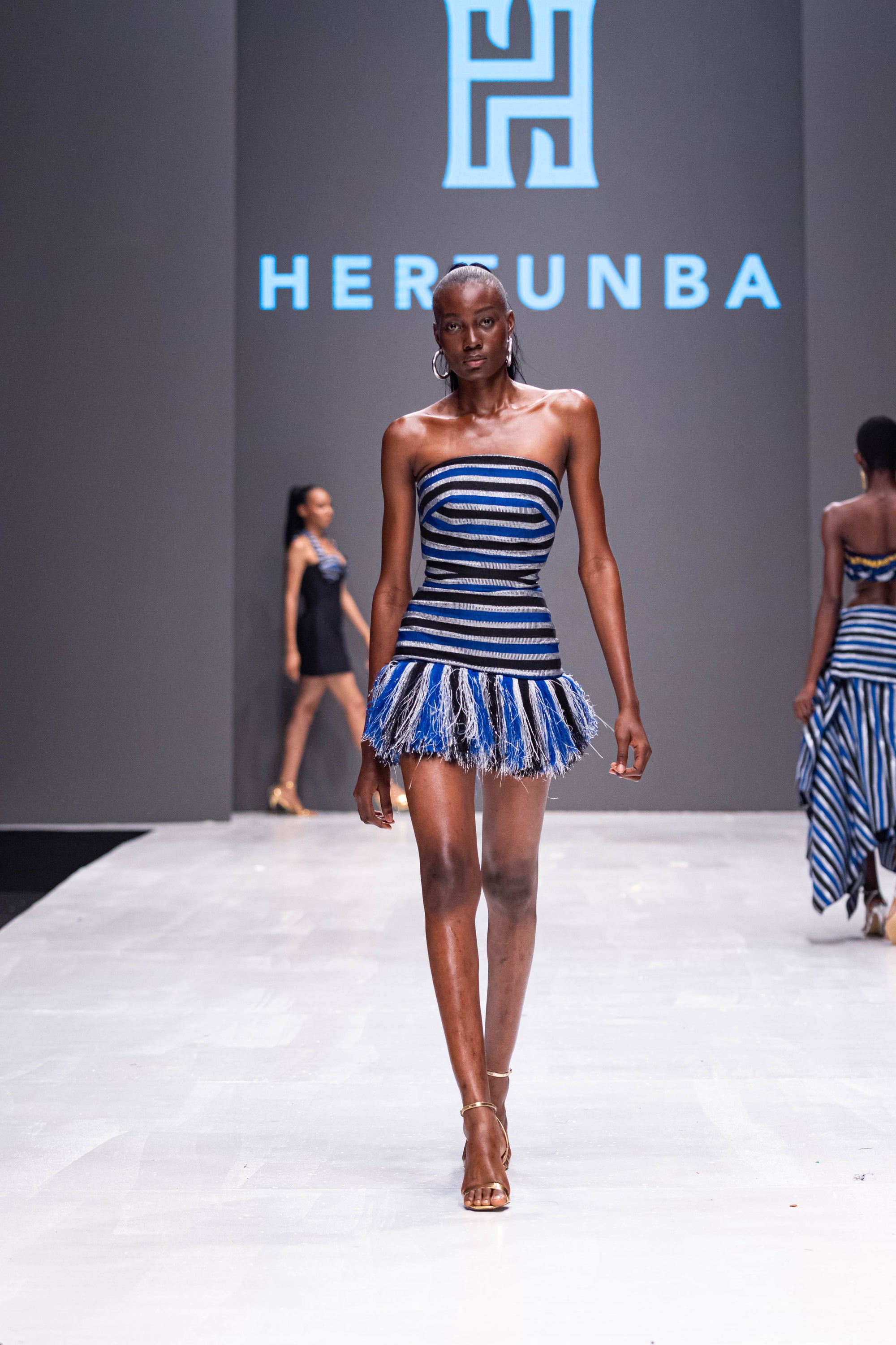 From her Lagos atelier, Florentina Agu's Hertunba elevates traditional weaving like aso-oke through innovative textile manipulation. The brand's signature interlaced geometric patterns and dimensional surfaces showcase the precision of women artisans, where recycled materials transform into architectural statements of modern luxury.