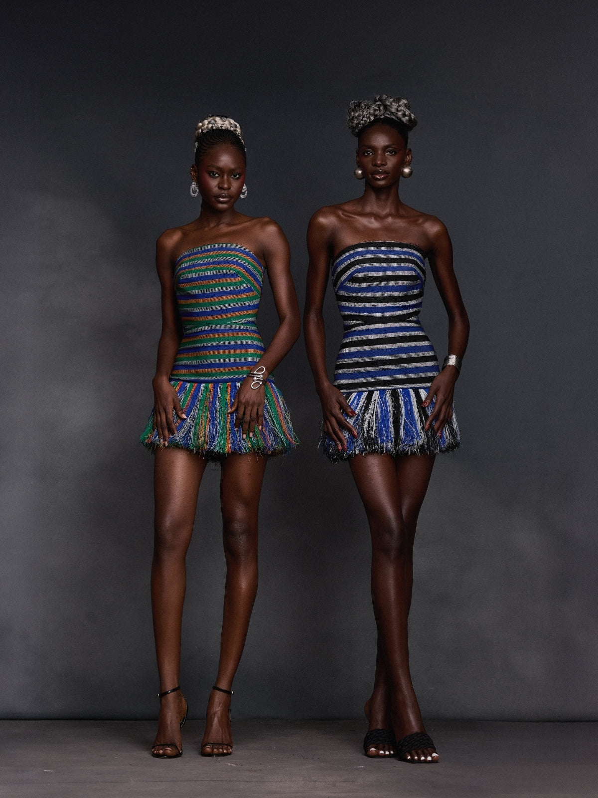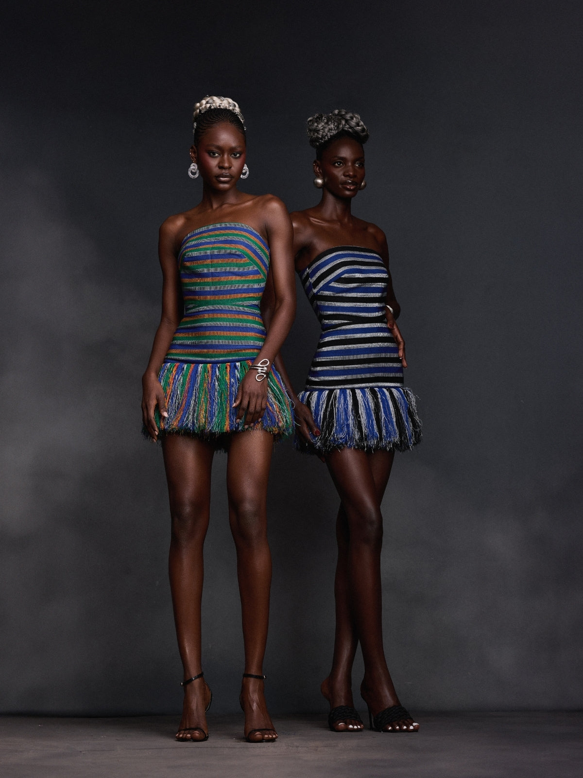 From her Lagos atelier, Florentina Agu's Hertunba elevates traditional weaving like aso-oke through innovative textile manipulation. The brand's signature interlaced geometric patterns and dimensional surfaces showcase the precision of women artisans, where recycled materials transform into architectural statements of modern luxury.