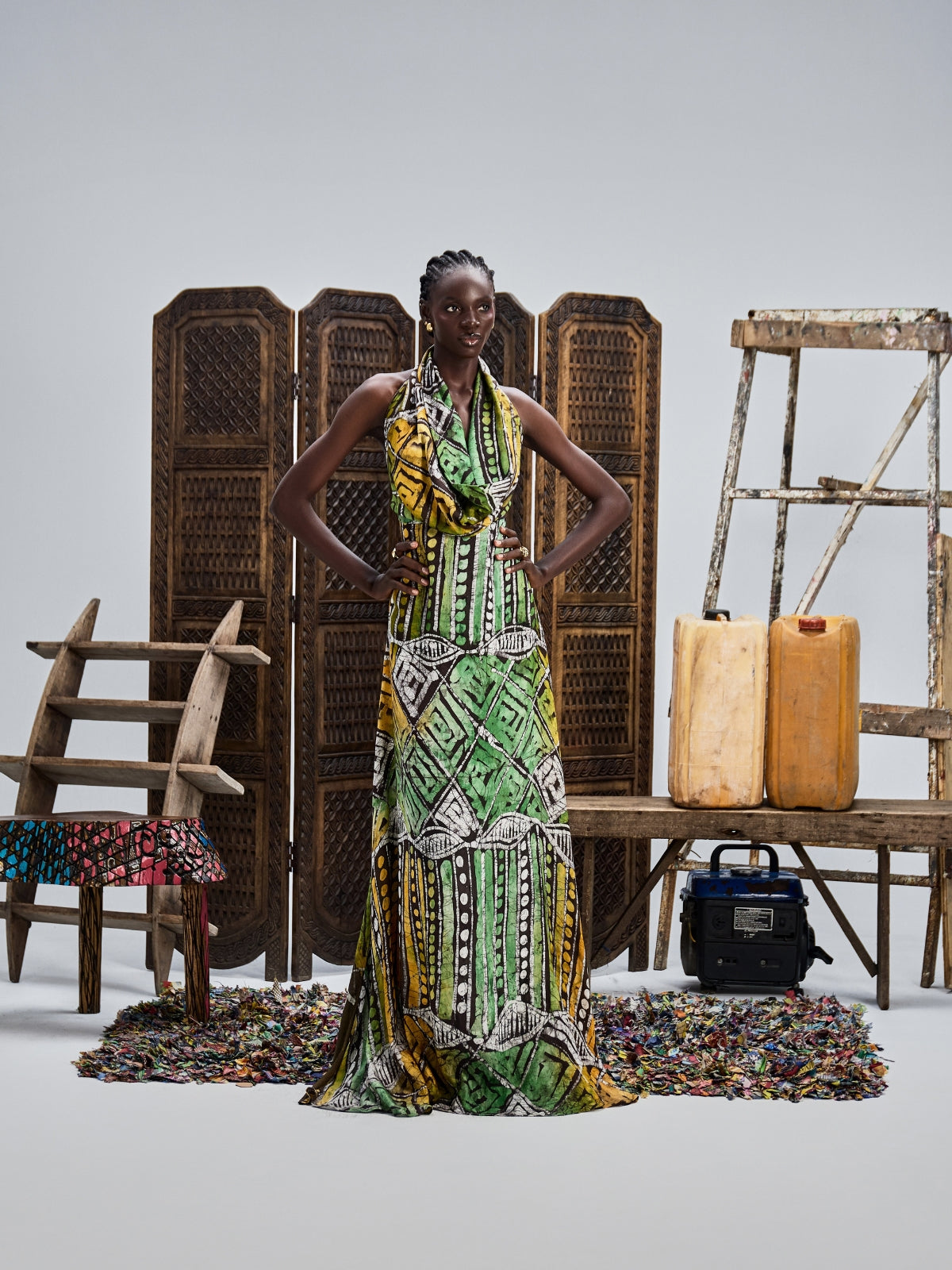 From her Lagos atelier, Florentina Agu's Hertunba elevates traditional weaving like aso-oke through innovative textile manipulation. The brand's signature interlaced geometric patterns and dimensional surfaces showcase the precision of women artisans, where recycled materials transform into architectural statements of modern luxury.