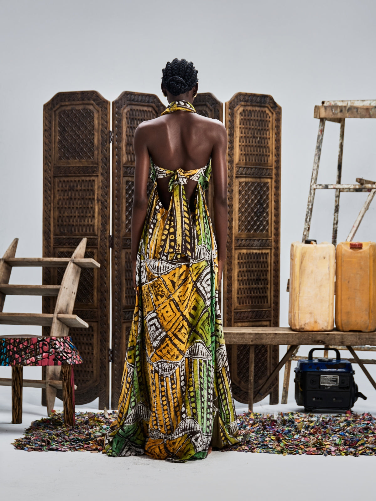 Hertunba designs its styles to celebrate the uniqueness of every woman. The Lara Dress is handcrafted in Lagos from hand-dyed upcycled cotton chiffon embellished with a vibrant and colorful motif. It's framed by a halter neckline and falls to a flowing maxi skirt that pools at the floor. Just add strappy sandals and bold jewelry to complete the look.