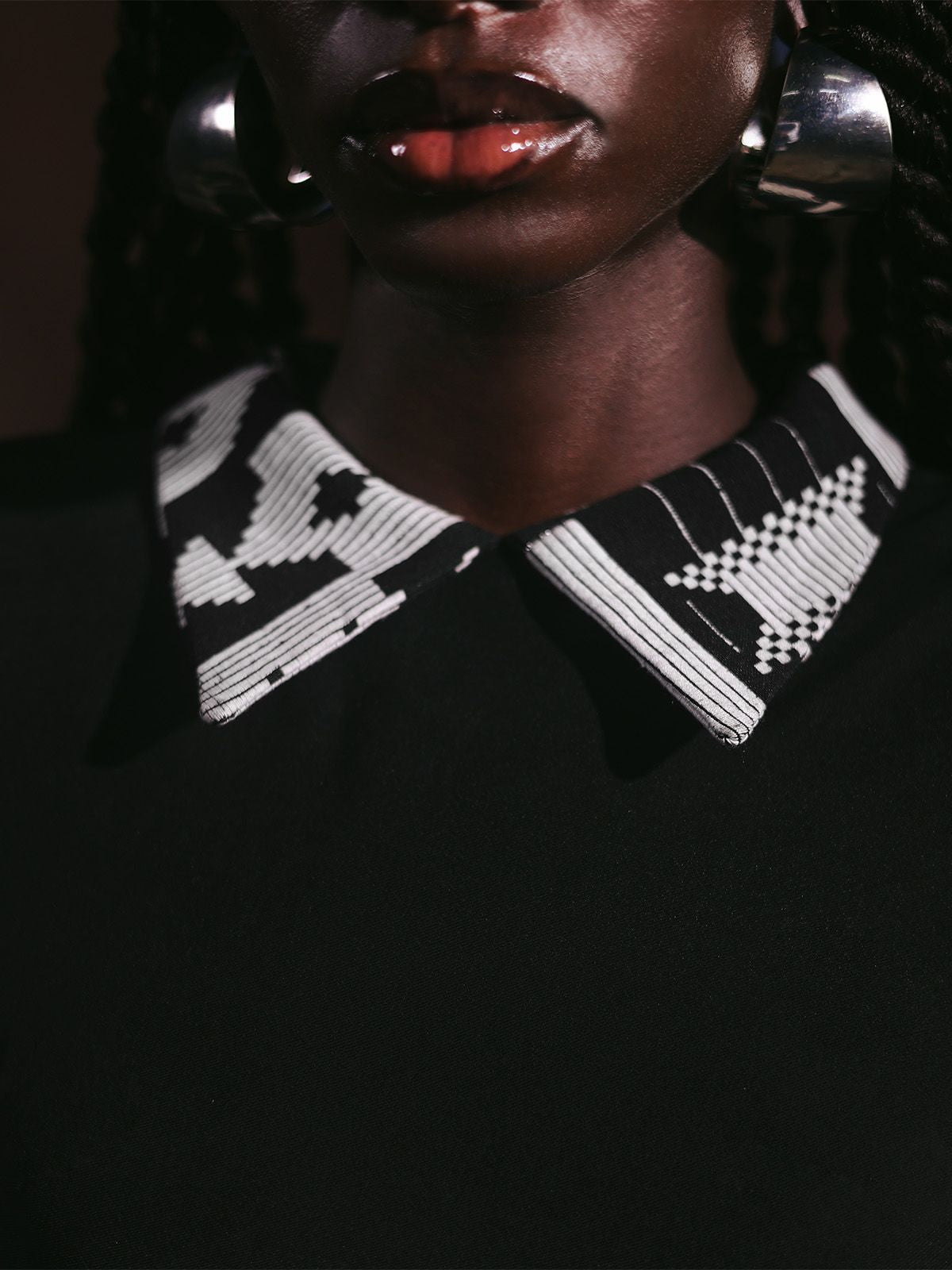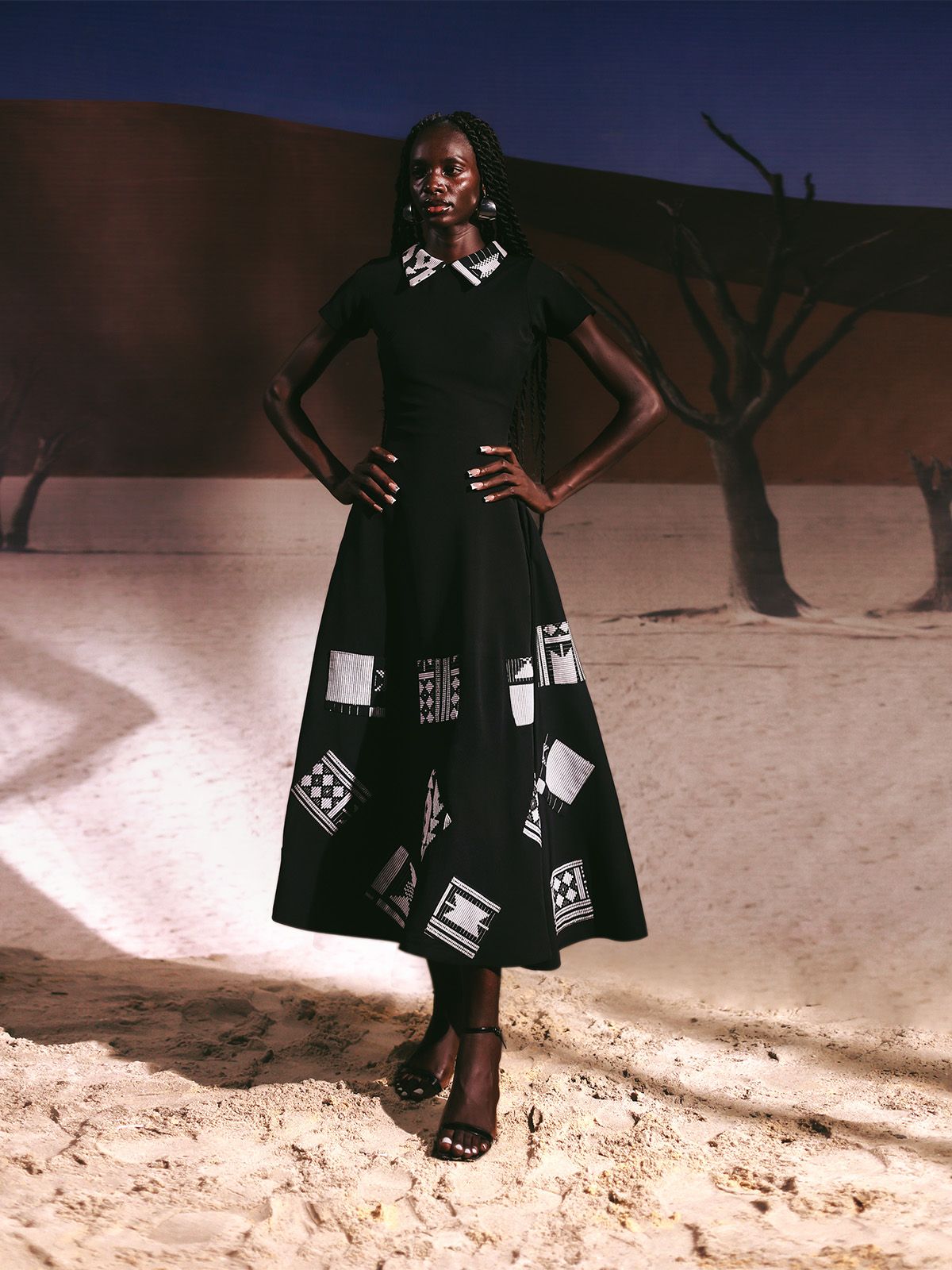 Hertunba's Tola Dress features a fit-and-flare silhouette that's contoured through the bodice and dramatically flares to a structured midi skirt. Crafted by Nigerian female artisans, zoom in to appreciate the brand's signature Akwete textile panels and matching collar—the placement of the pattern is unique to each one. Style yours with kitten-heel mules for a low-key yet sophisticated look.