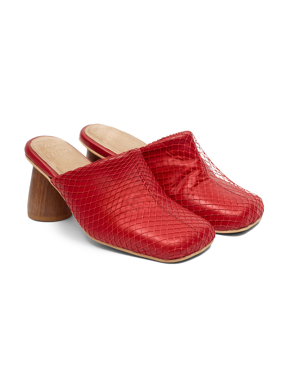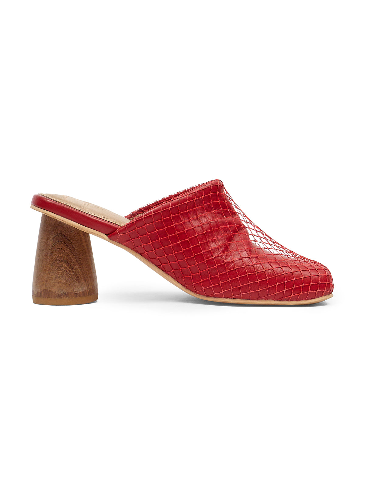 Born from the collaboration of two trailblazing African brands— IAMISIGO and Shekudo— these mesh mules blend artisanal craftsmanship with a distinctly modern edge. Crafted from supple calfskin with a tonal mesh overlay, the backless silhouette rests on a chunky block heel that lends a sculptural edge. Effortless yet impactful, wear yours with everything from tailored trousers to flowy dresses.