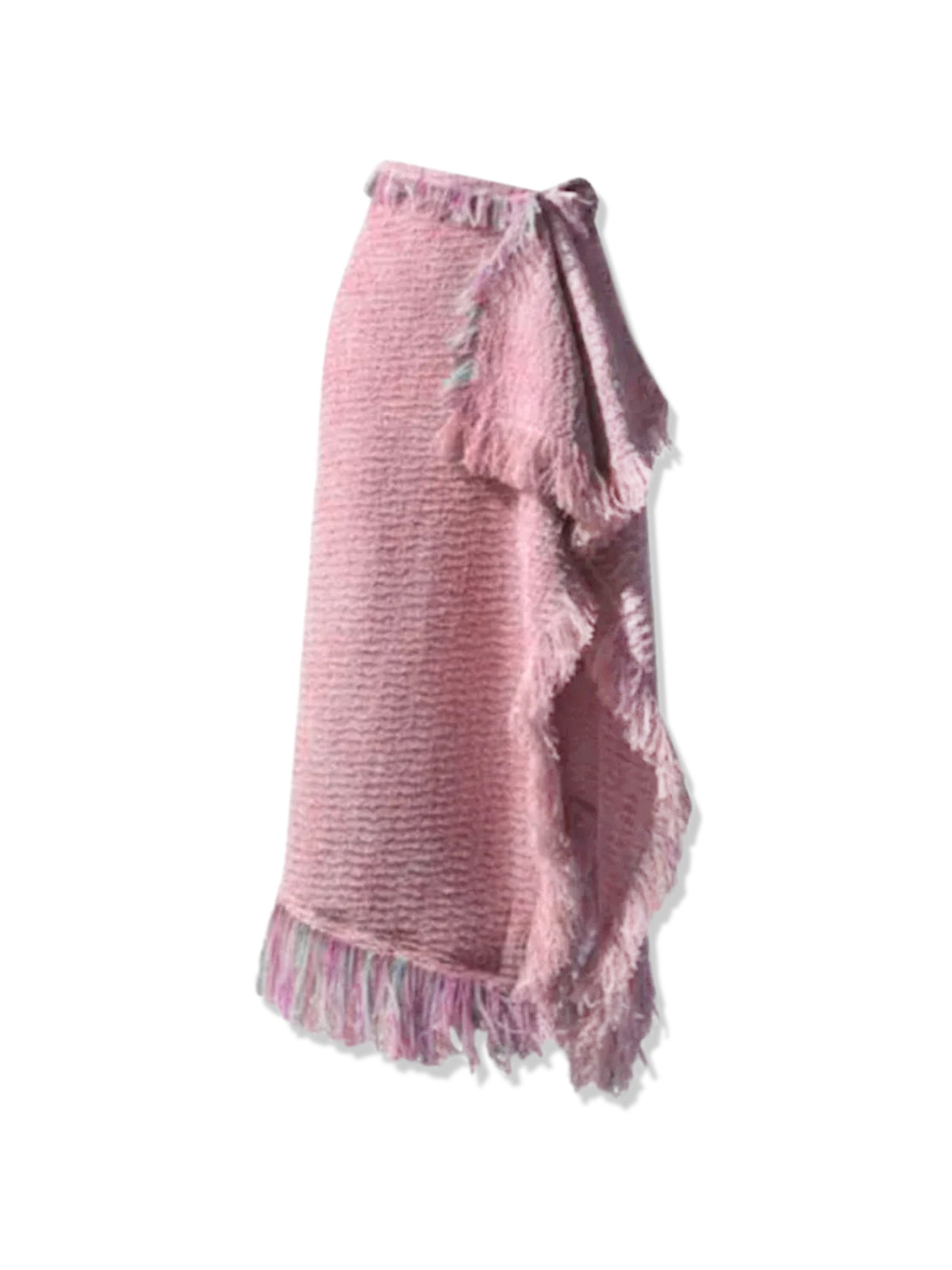 Imad Eduso's Ivie Skirt reflects the brand's enduring focus on color, texture, and craftsmanship. Tailored from tactile tweed and embellished by hand with an eye-catching fringed trim, it has a wrap-effect shape that creates a leg-baring front split and a swishy handkerchief hem. Wear yours with a fitted top and mules.