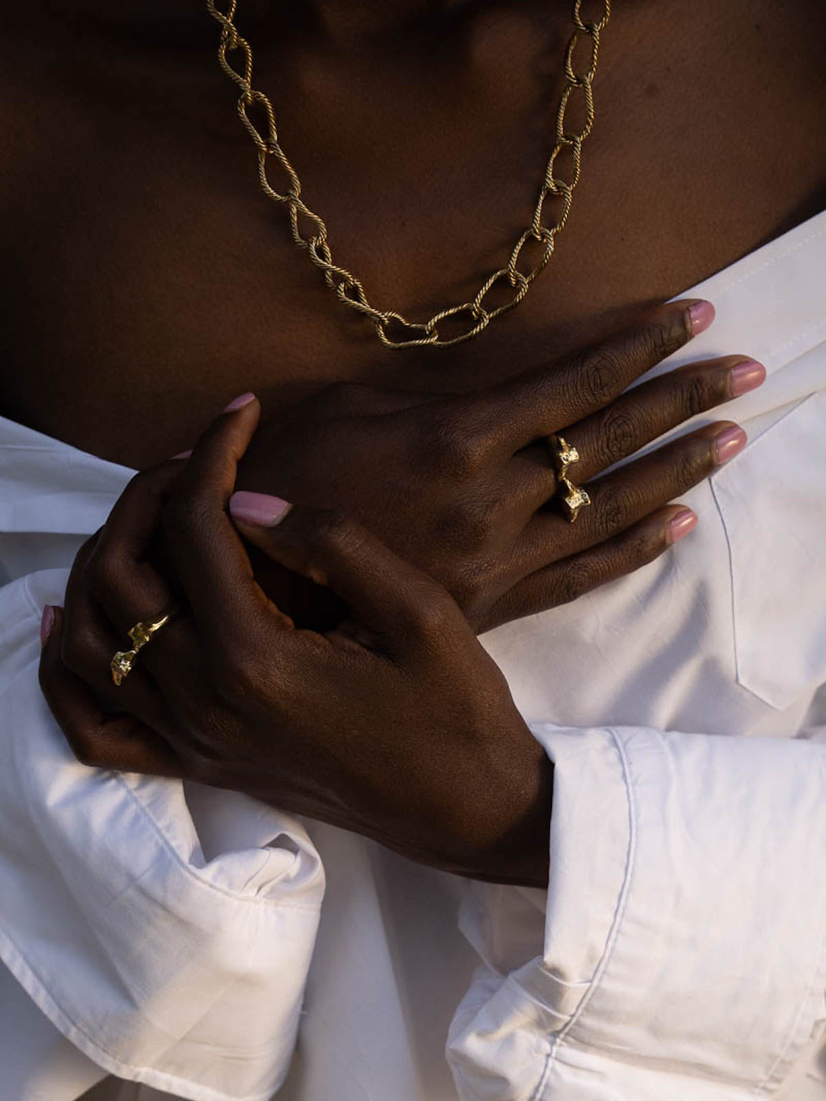 Steeped in symbolism and tradition, Jiamini’s collections tell meaningful stories in precious, miniature forms. This gold-plated brass ring spotlights the label’s signature vertebrae motif, offering the perfect choice to represent a new life chapter or celebrate a conquered challenge. As with all pieces by the brand, it’s been handcrafted in Kenya by local artisans.