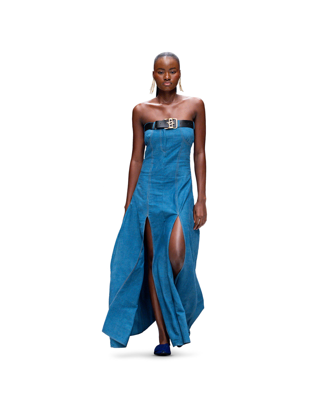 Nigerian designers Ike and Ola Akindeinde are committed to creating clothes that outlast trends, infusing modernity into timeless shapes. Case in point: this Alhamis Dress, made from locally sourced Funtua cotton. The strapless neckline and thigh-high front slits ensure contemporary appeal, paired with the brand's unrivaled textile expertise—each piece is dyed at Kano's historic indigo pits. Wear yours with flats and statement jewelry.