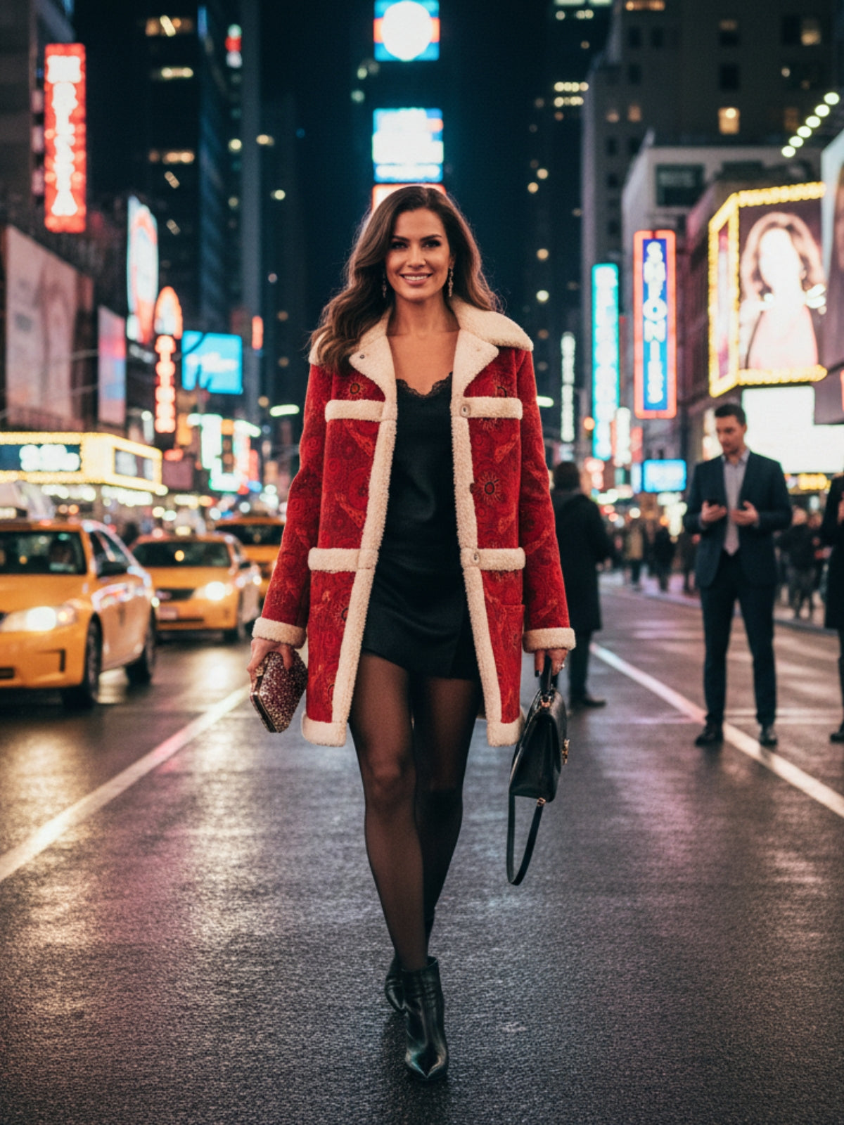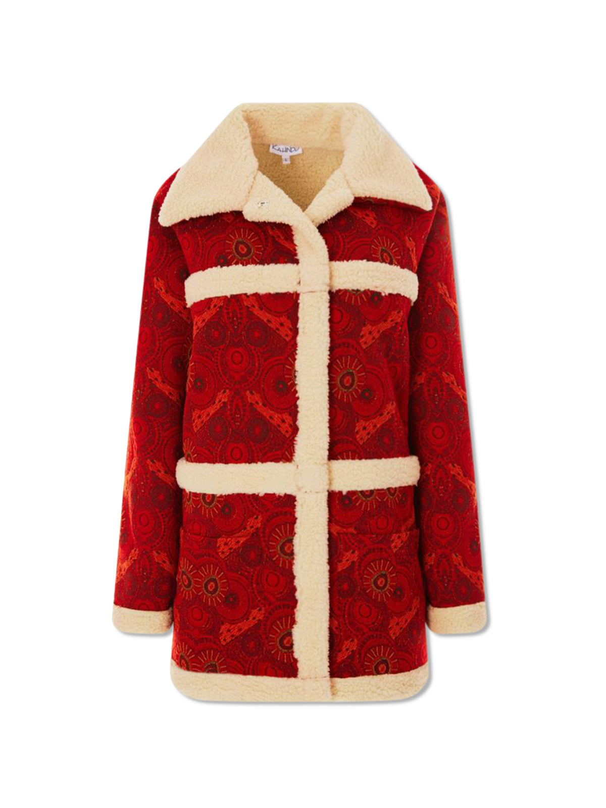 Reflecting the label’s vision of modern luxury rooted in African artistry, Kahindo’s Maputo Coat brings bold sophistication to cold-weather dressing. Crafted from soft custom-knit jacquard in a deep red hue, it’s elevated with plush shearling accents and a fully lined interior for added warmth. The style fastens with concealed buttons and has two patch pockets to keep essentials close. Layer it over a shirt and jeans on evenings out.