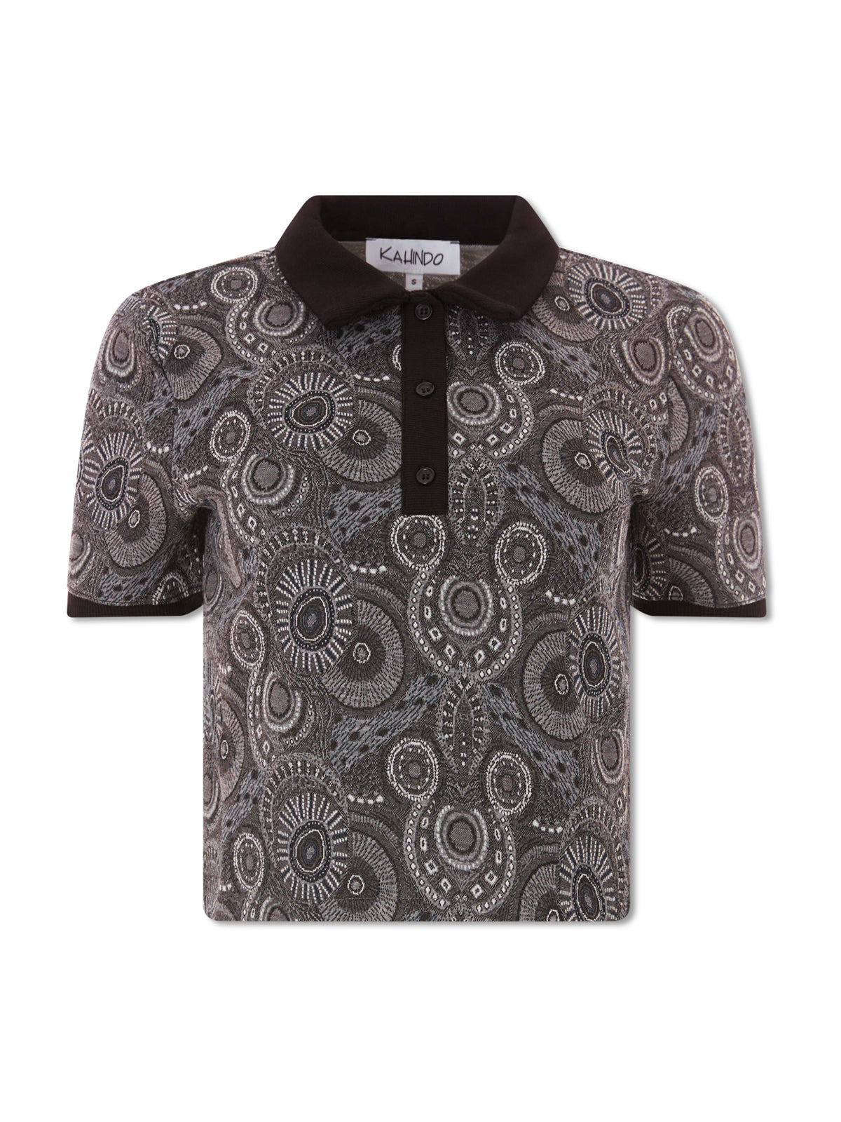 Kahindo’s Maseru Polo offers a refined take on a classic style. Expertly jacquard-knitted in a subtle grey hue, it features a geometric pattern that combines African art and New York architecture. It has contrasting black trims and comfortable short sleeves. Slip yours on with tailored pants or the label's Praia mini skirt.