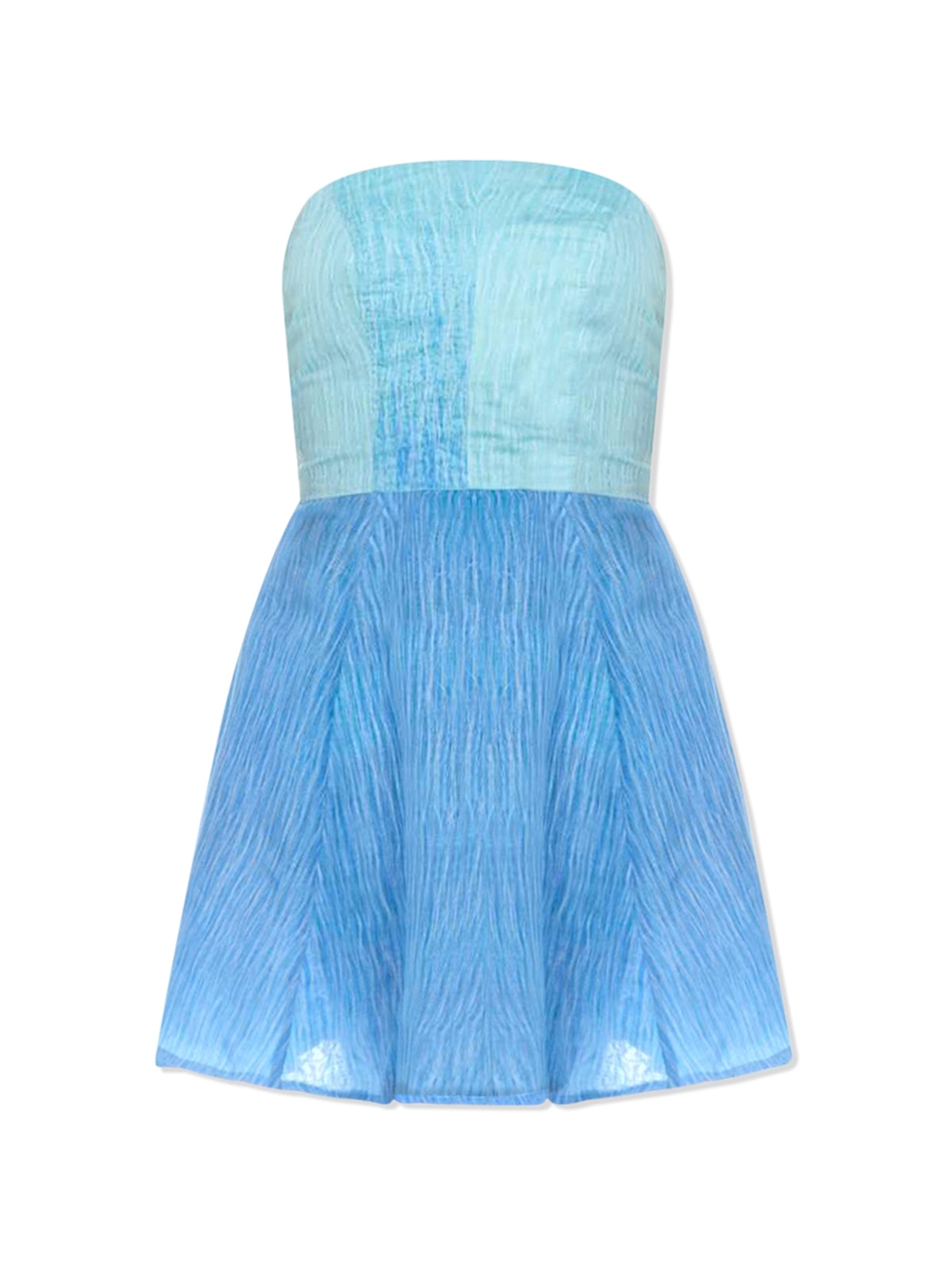 Kahindo’s Mini Ombré Dress captures the serene beauty of the Atlantic Ocean through its ethereal blue gradient. Crafted from luxurious double-layer threaded organza, the strapless silhouette exudes modern femininity, with an airy, light-catching finish that mirrors the fluid movement of ocean waves. Designed for the woman who embodies effortless sophistication, this timeless piece transitions seamlessly from sunlit afternoons to evening soirées. Style yours with minimal accessories to let its ombré elegance take center stage.