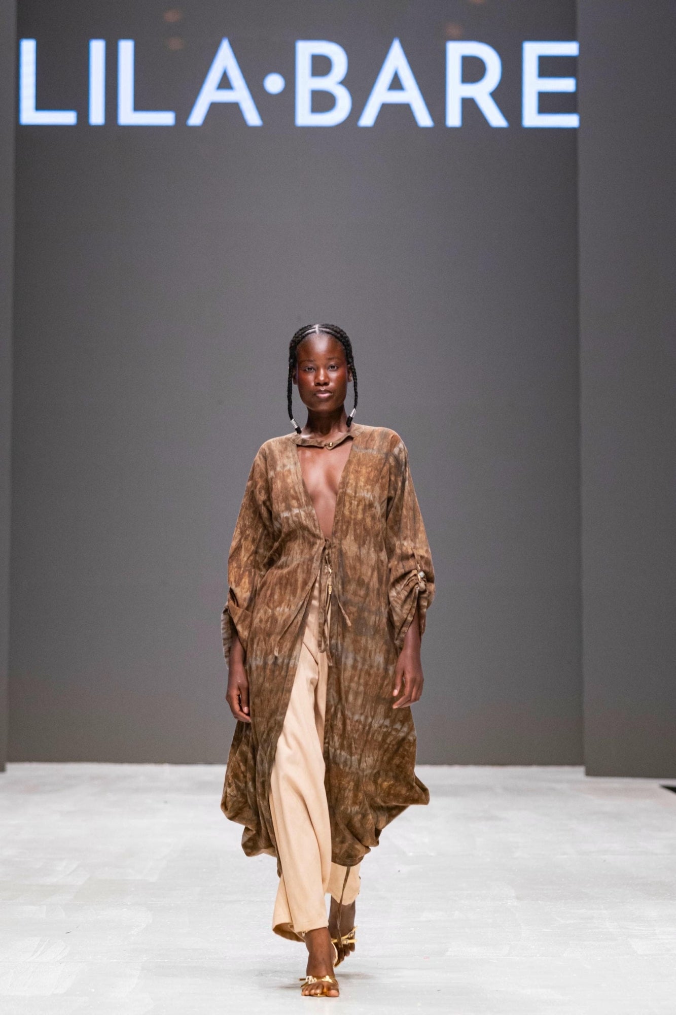 A reimagining of one of Lilabare’s signature silhouettes, the Collared Kimono unites the brand’s sari-inspired drape with tailored refinement. The rounded collar flows into an open-front design, cinched gently at the waist with a tie belt. Gathered sleeves and soft volume bring a sense of movement, while the handloomed cotton—botanically dyed in Nairobi—imbues natural texture and ease. Wear belted with trousers and pair with bold jewelry.