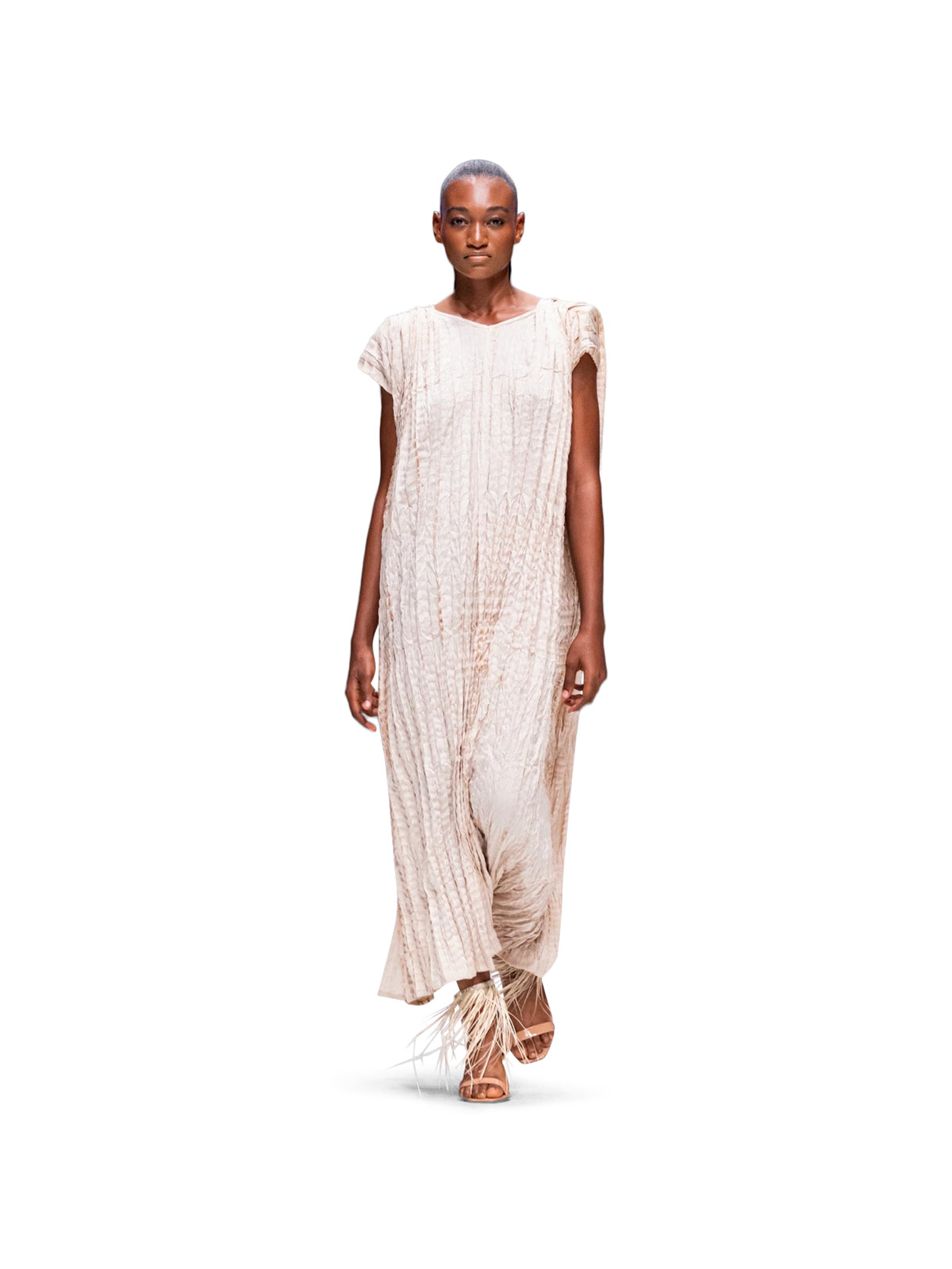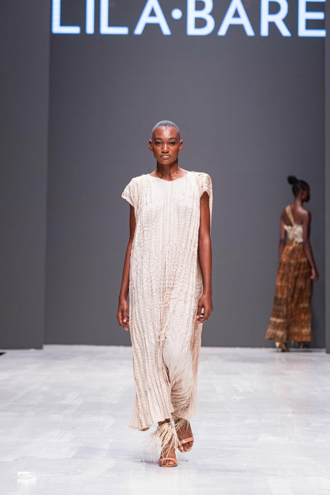 The Crushed Dera Dress is a refined expression of texture and silhouette. Handcrafted from botanically dyed cotton, it features subtle cap sleeves with built-in shoulder pads for sculpted structure. The crushed surface, fabricated entirely by hand in Lilabare’s Nairobi atelier, moves fluidly with the body, creating natural contouring. Its easy midi length and relaxed fit make it a versatile piece that combines craft and comfort. Wear with leather slides and gold jewelry for understated sophistication.