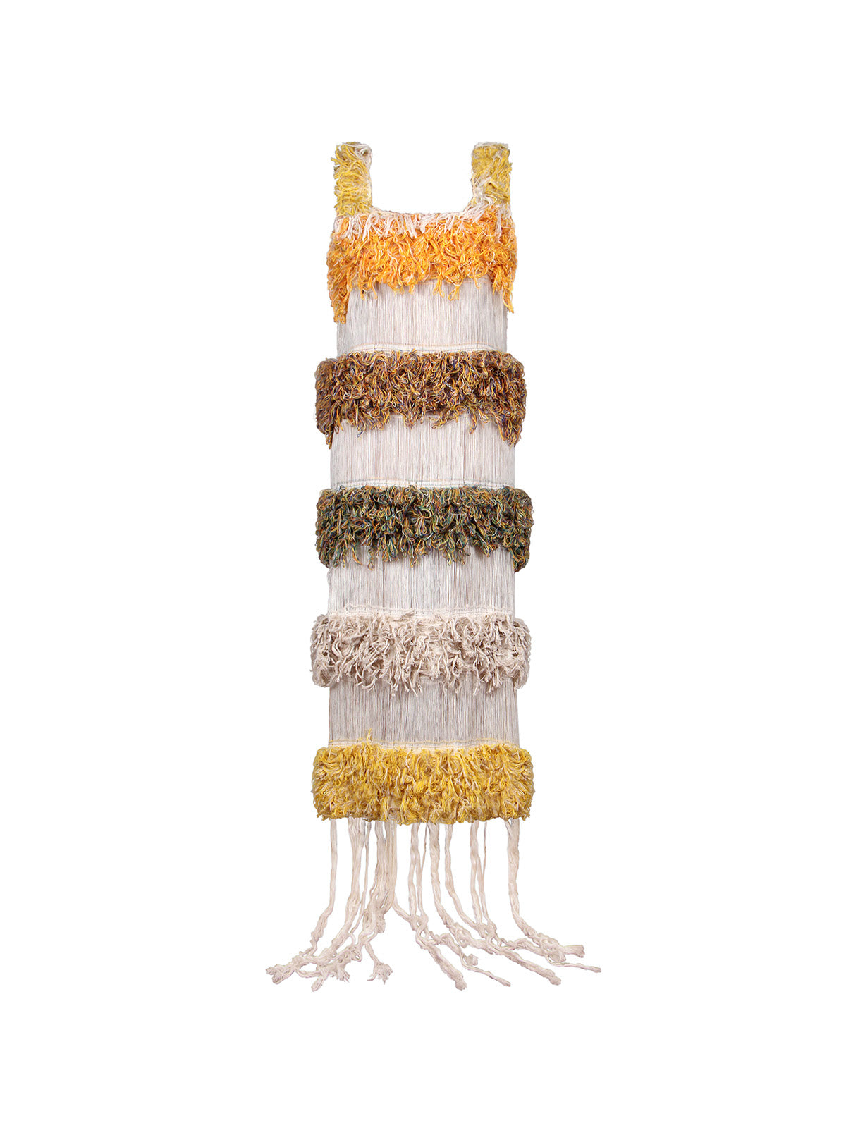 IAMISIGO's long dress is sewn from a cotton and hemp blend that's been loop woven for a tactile finish, an intricate process that can take artisans up to a full day to complete. Embellished with an ombré brown to orange and yellow colorway to create a bold gradient effect, the garment has wide shoulder straps and a squared neckline. Make the most of the side slits and style yours with knee-high boots.