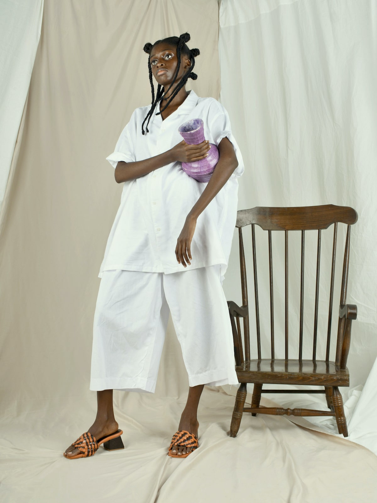 Autodidact designer Ebuka Omaliko’s bespoke accessories label, Maliko, champions the value of the artists’ touch. Whether crocheted, embroidered, carved or painted, his thoroughly modern rotation of sandals, slides and bags feature mindfully executed artisanal techniques with a contemporary sensibility. Drawing inspiration from his interactions with the diverse people of Lagos, Nigeria, the designer distills the city’s kinetic energy into purist pieces with global appeal.