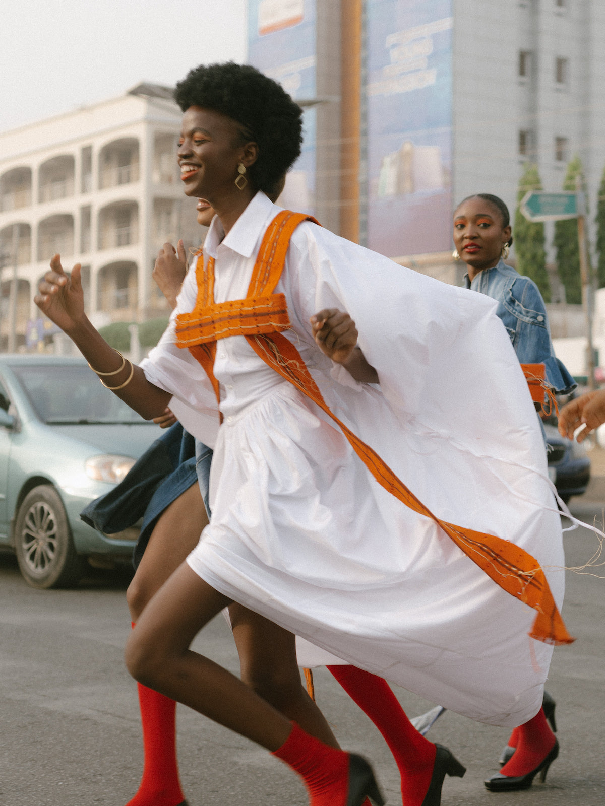 Sustainable brand NKWO relaunched in 2012 in Nigeria, with a focus on the preservation of traditional craft while curbing the damaging effects of textile waste. Each ready-to-wear piece is crafted using traditional West African weaving, beading, hand-dyeing and embroidery. The designer created her own fabric—using a modern strip weaving technique—dubbed “Dakala.” This hand-loomed upcycled fabric has a distinctively rich feel and is featured in each collection.