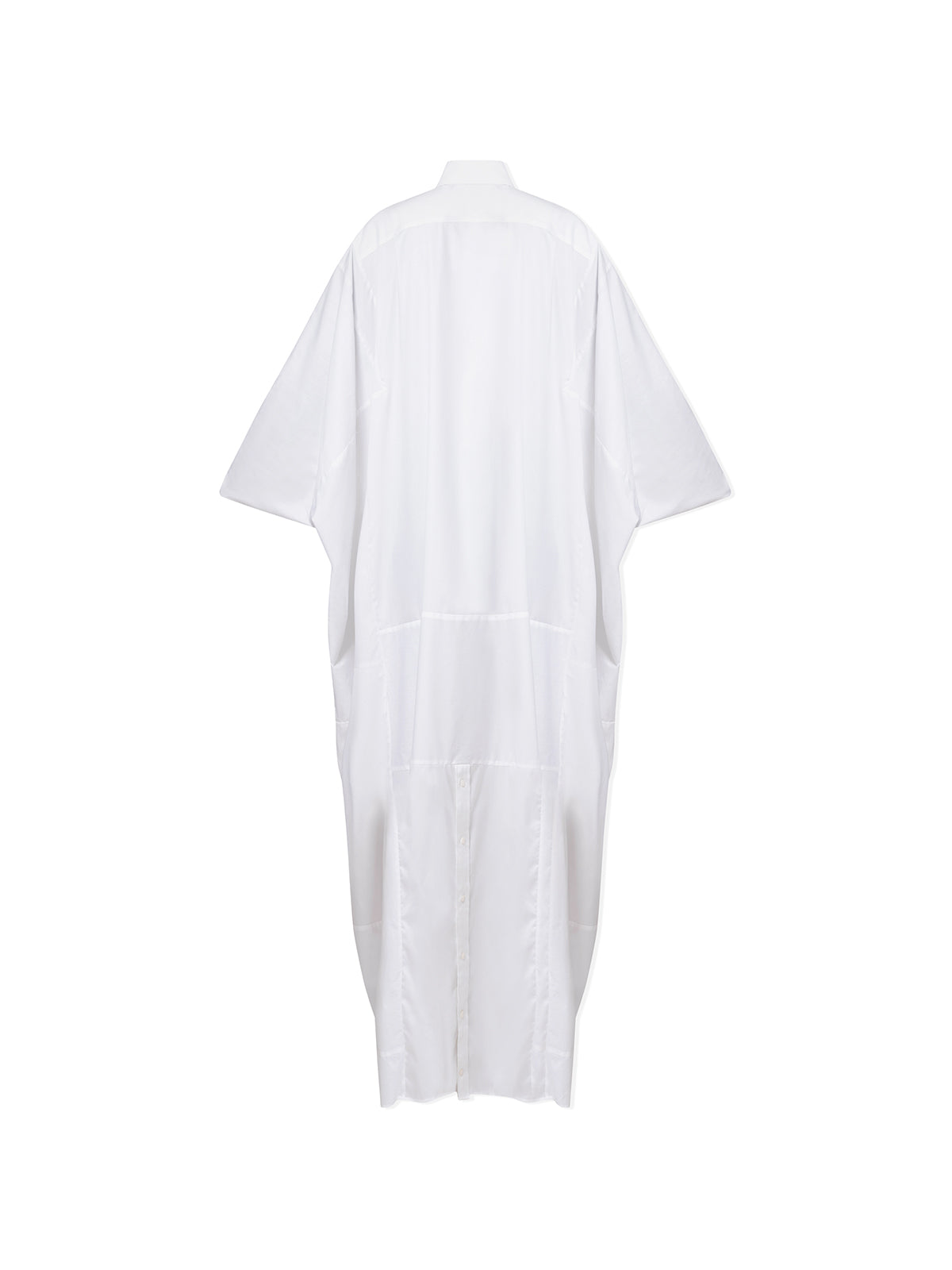 - Pointed collar, empire waistline, wide cropped sleeves, front slit, adjustable ties