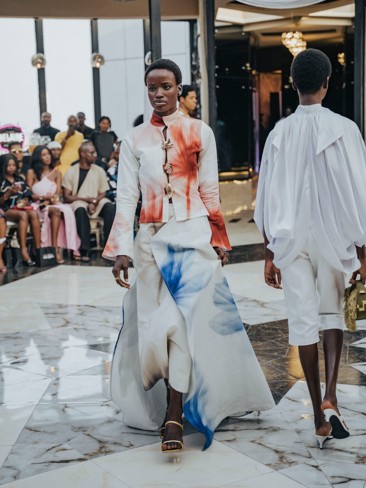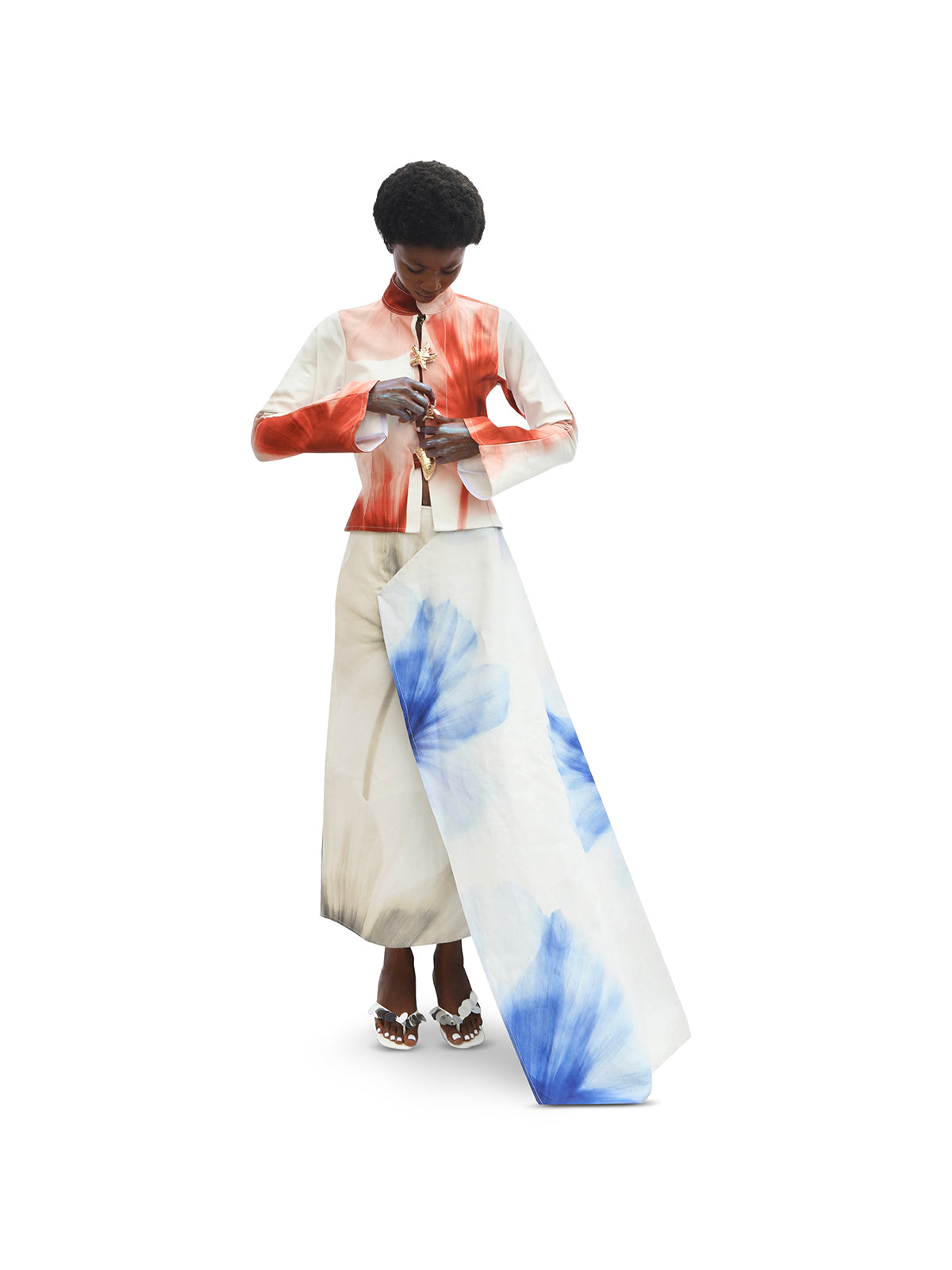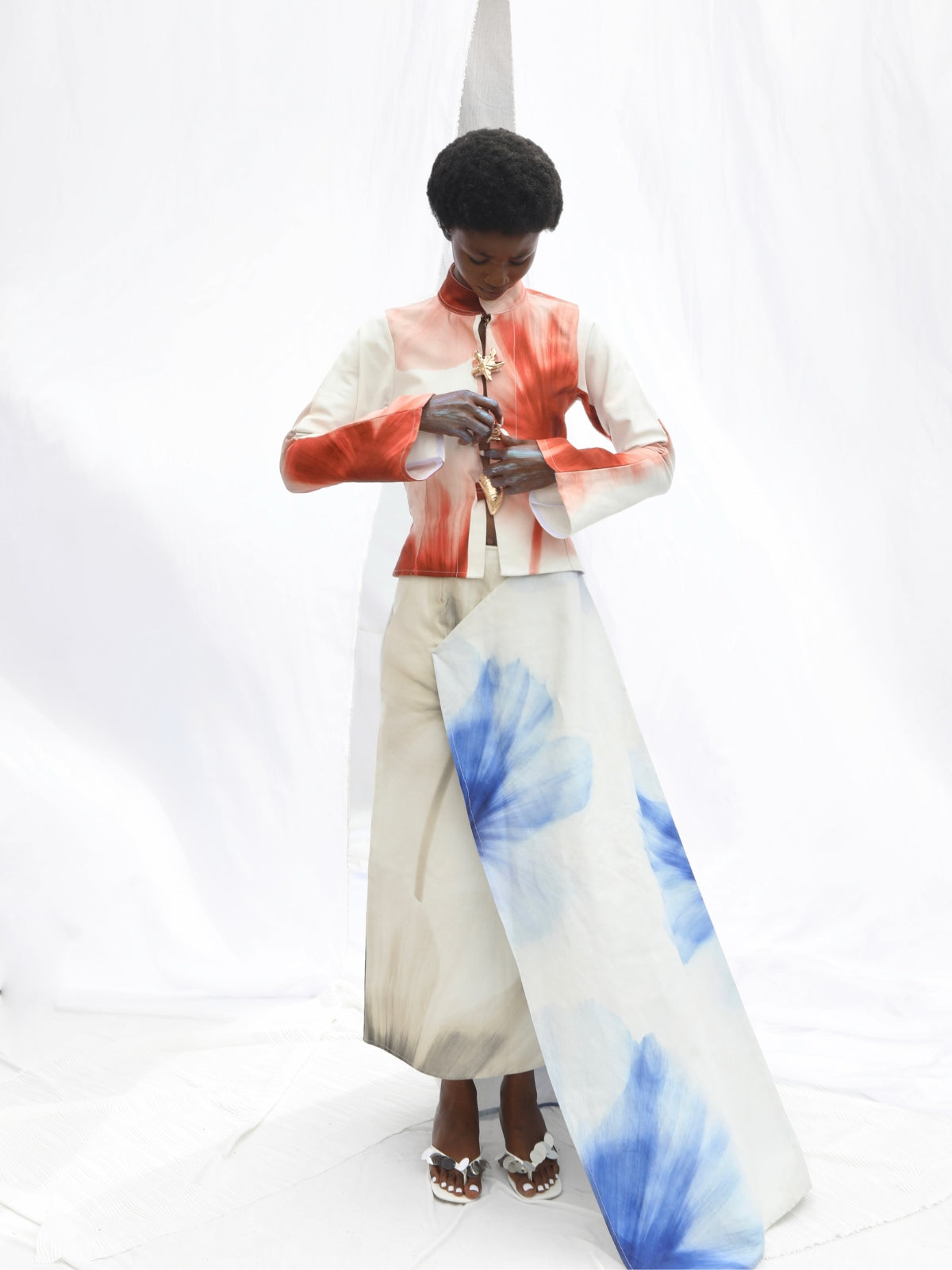 Launched in 2011, Lagos-based men’s and womenswear label Orange Culture creates silhouettes with unexpected twists and employs artisanal techniques, native to the Yoruba community, into his textiles. A former LVMH Prize and Woolmark Prize semi-finalist, his daring and gender non-conforming approach to design has built him a global cult following.