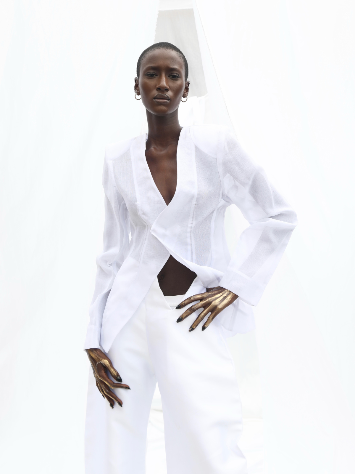 The Solace Trousers from Nigerian brand Orange Culture blend precision tailoring with emotional ease. Cut from luminous mikado, they fall fluidly through the leg, creating movement with every step. Style with the matching Solace Blazer for a refined monochrome look that feels timeless and deeply personal.