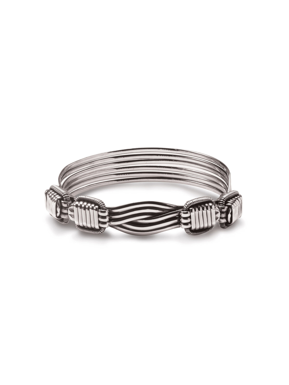 The organic silhouette of this bangle is the result of founder Patrick Mavros' fascination with the origins behind the traditionally worn Elephant Hair Bangle. For years, people across the African continent wore bracelets made of elephant hair, which they believed imbued magical properties. They were gifted as tokens of love and luck. The interwoven strands with silver wire knots on this bangle are a revival of this legend; it's carefully hand-crafted in Mauritius from sterling silver.