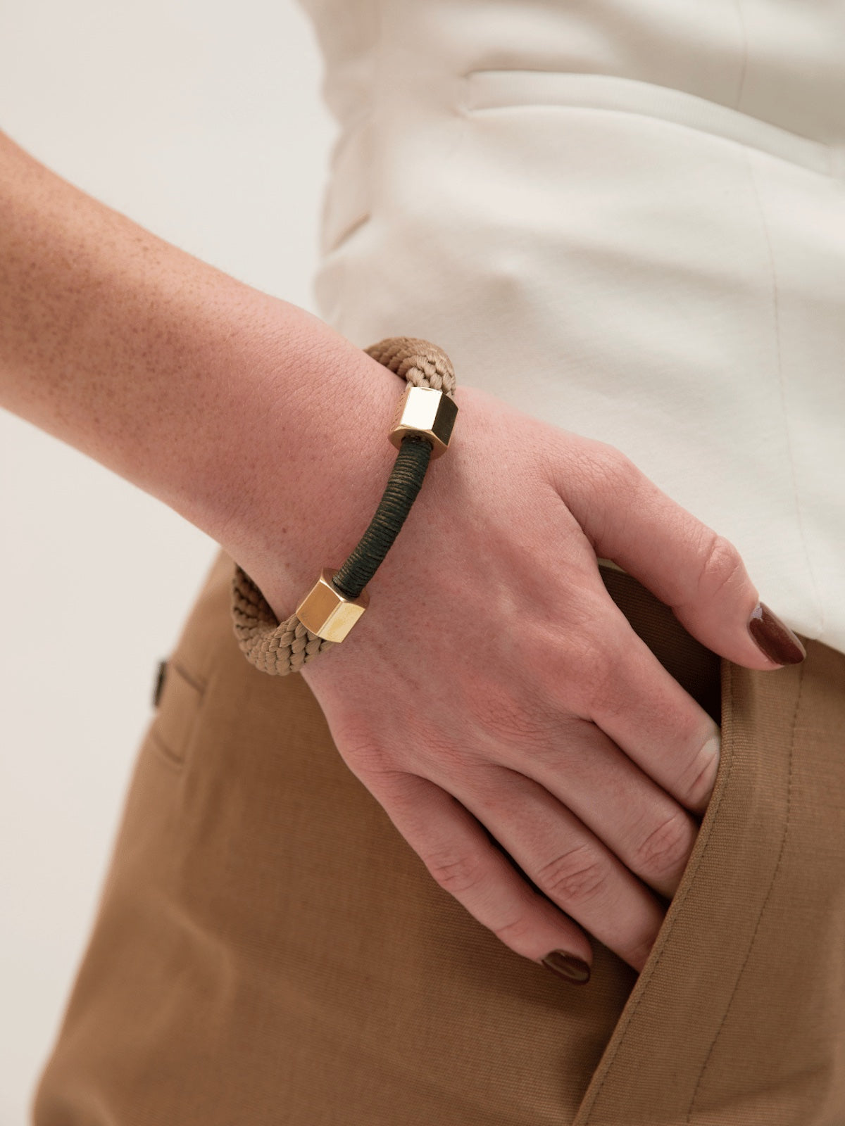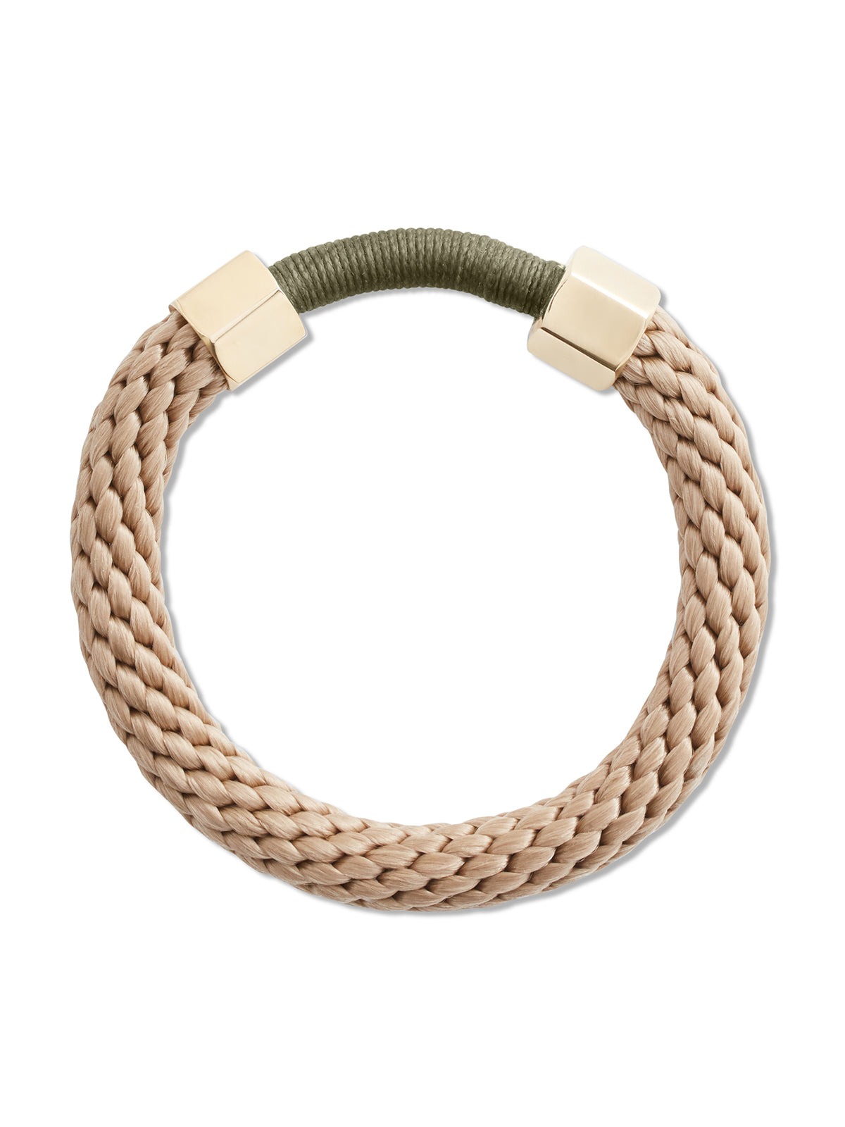 South African label Pichulik uses the language of African artistry and ornamentation to honor the bravery and beauty of all women. Their Aruba bracelet is designed in a classic circular silhouette and handcrafted by local artisans from rope cut-offs—remnants of the yachting industry. The piece's natural tones will work particularly well with neutral ensembles.