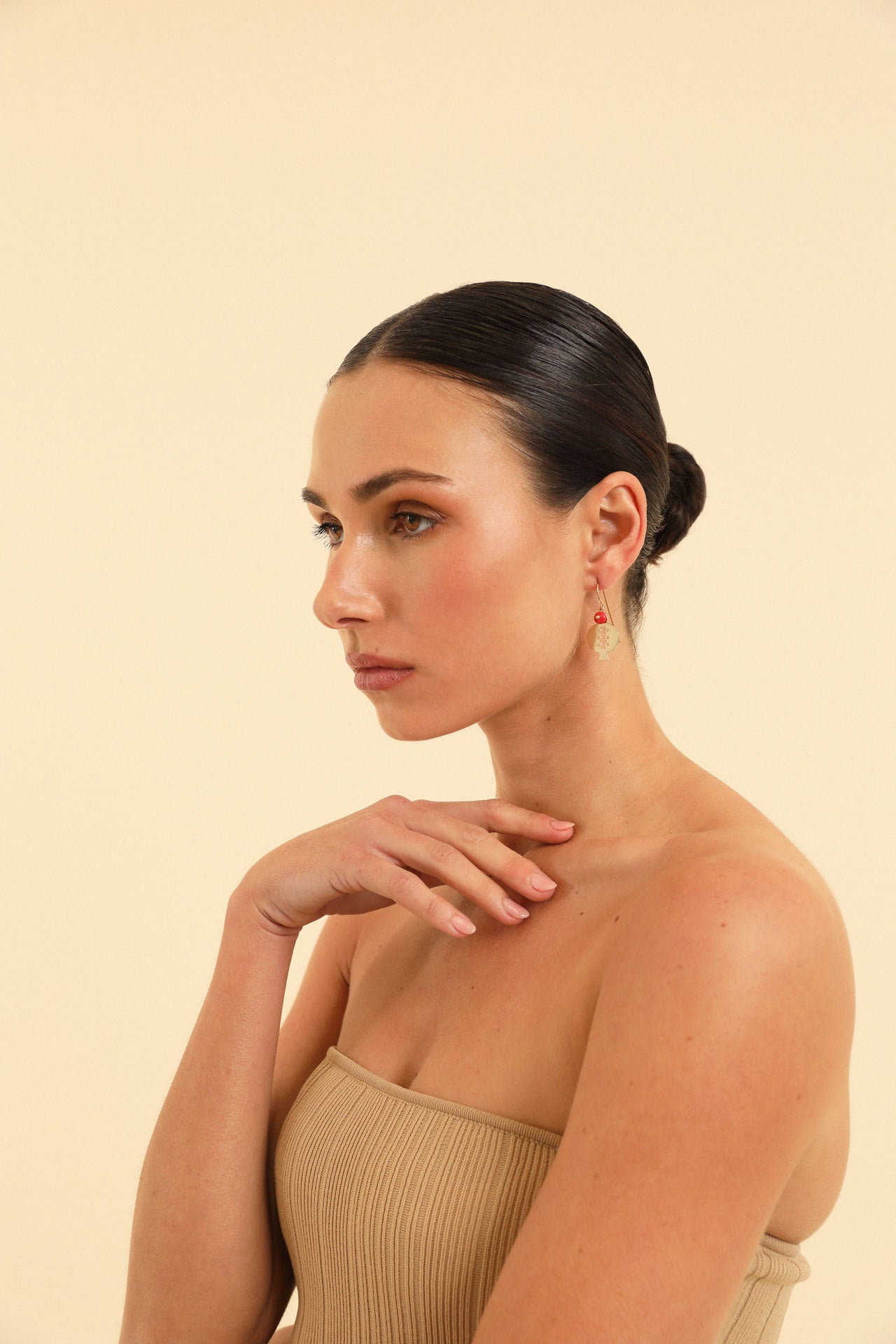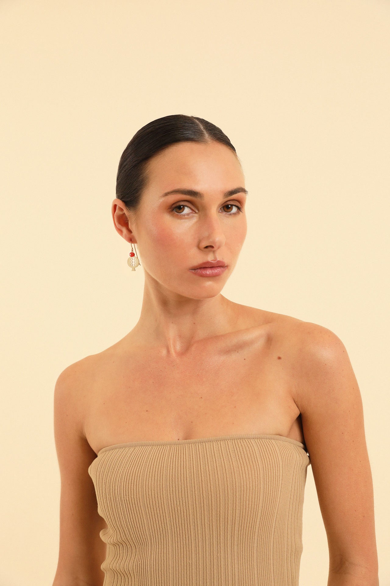 An elongated evolution of the Sephos form, these hook earrings allow the coral stone to move freely. They frame the face with softness while retaining symbolic depth — a balance Pichulik returns to throughout the collection. Ideal for day-to-night transitions with minimal styling.
