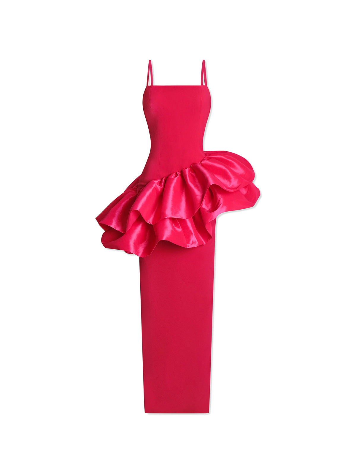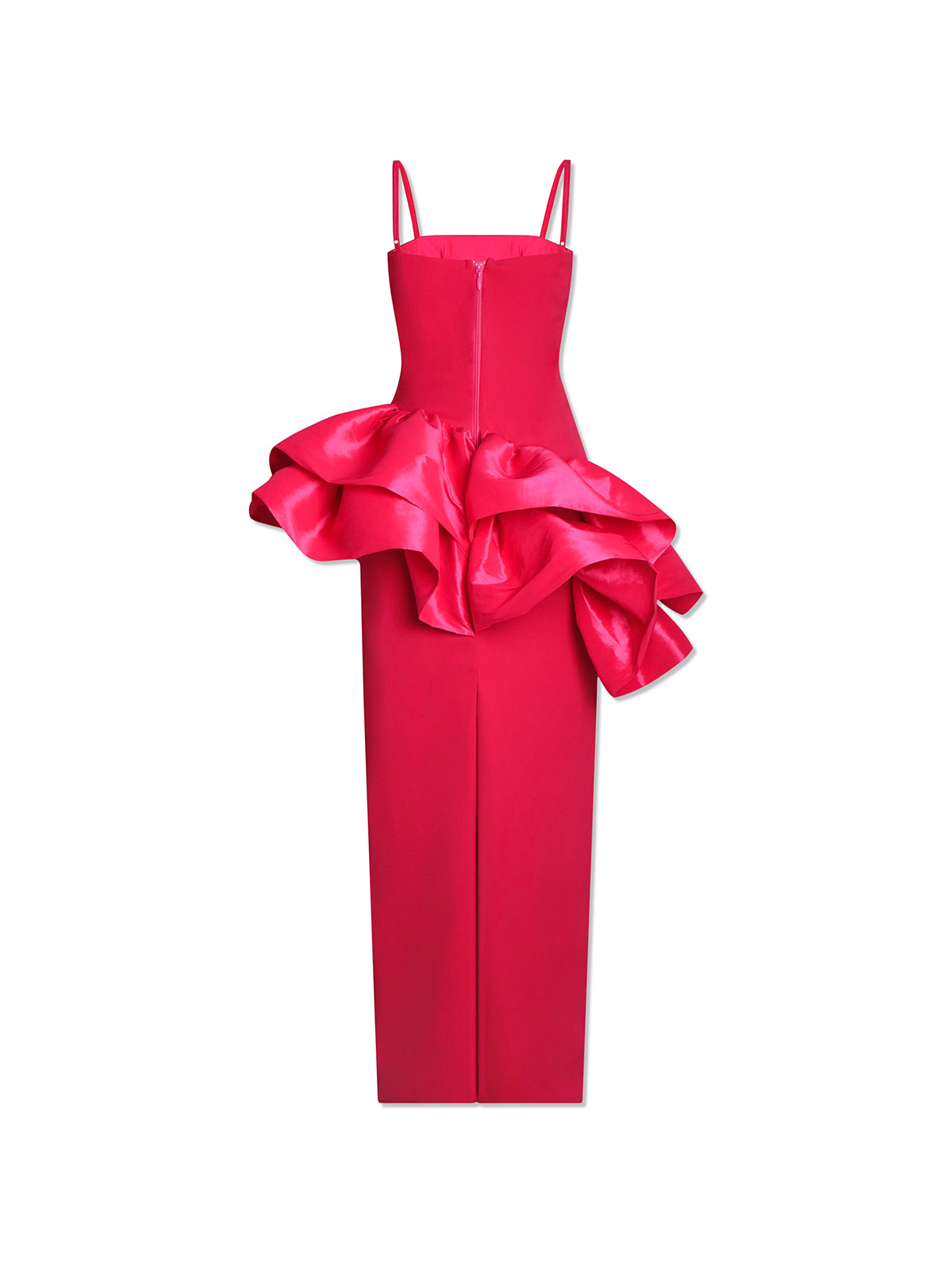 - Square neckline, adjustable shoulder straps, back zip fastening, back slit, maxi length, stretch lining