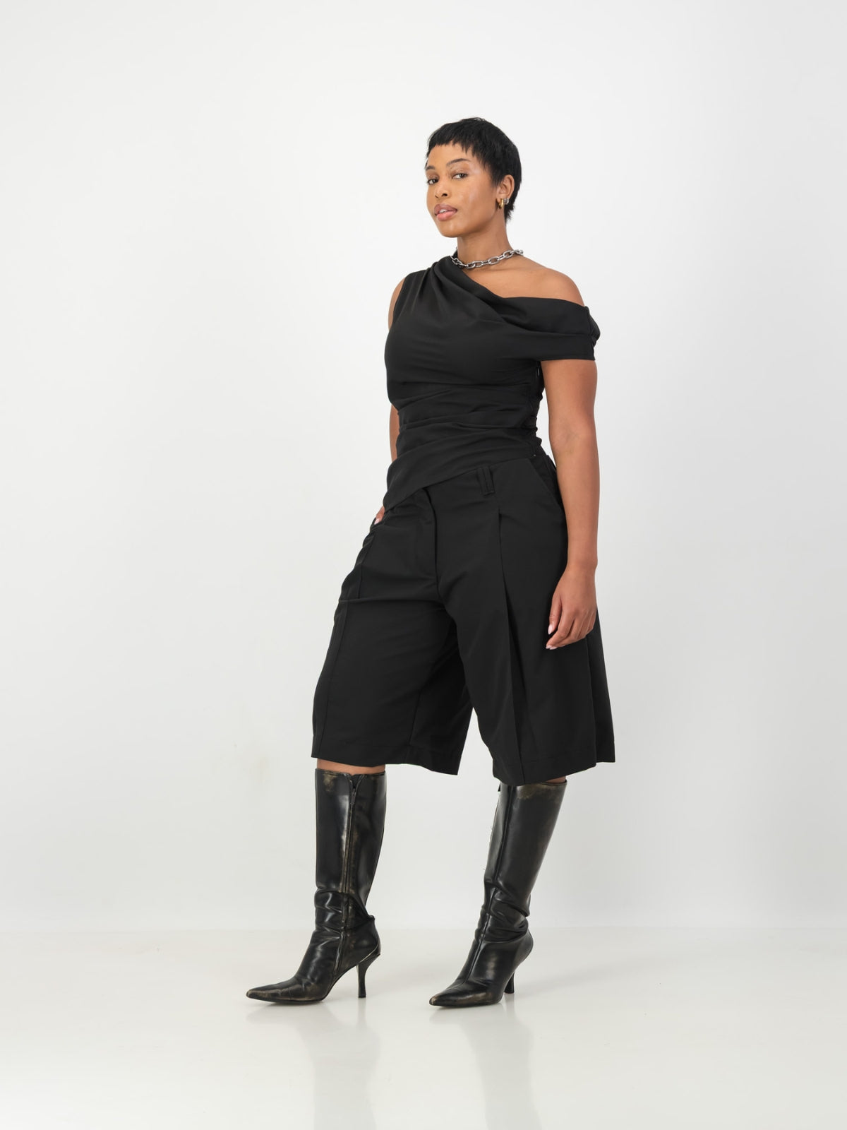Crafted in small batches of no more than 50 pieces, Rethread’s Dune Shorts reflect the label’s thoughtful approach to waste-free production. The effortless silhouette reinterprets menswear tailoring with relaxed precision—featuring leg-lengthening pleats, a slouchy fit, and practical belt loops and pockets. Style yours with a matching Black Reva Top and loafers.