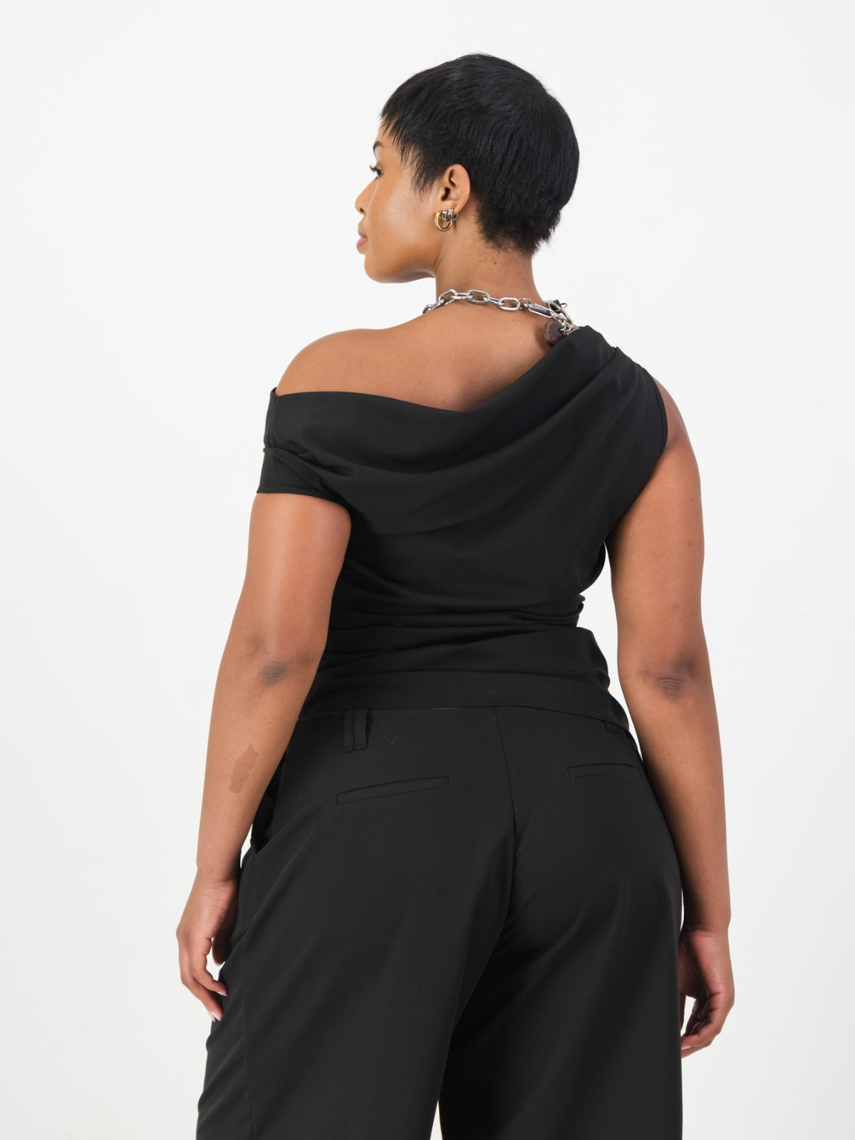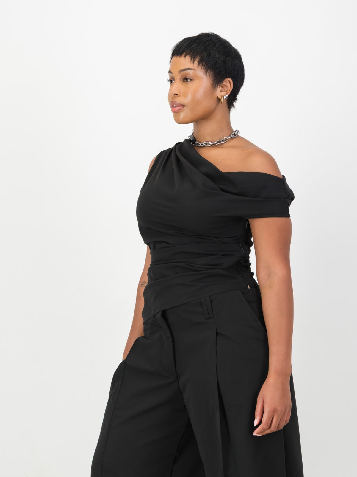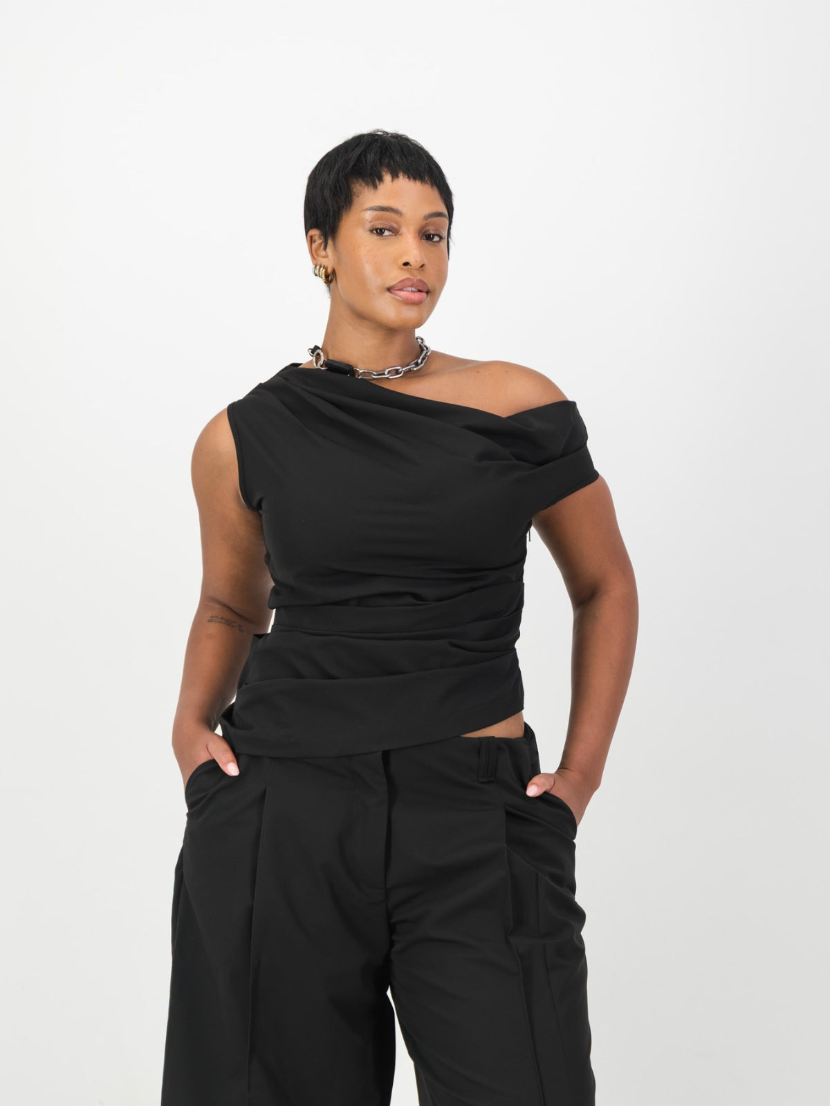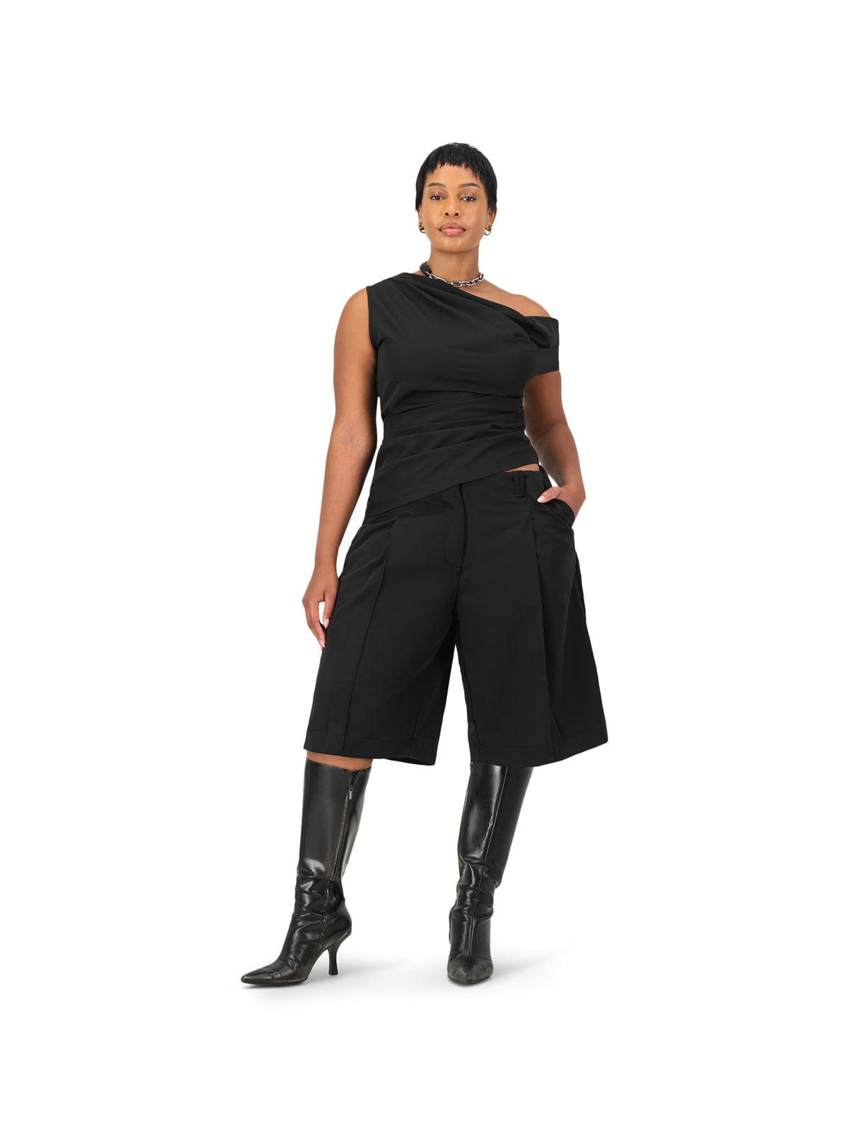 Rethread’s modern yet timeless collections are informed by an architectural approach to design and a deep respect for craft. This Reva Top has a sculptural shape defined by beautiful draping and an elegant shoulder-baring neckline. The subtly asymmetric hem can be easily tucked or left loose—try yours with the brand’s tailored Black Dune Shorts and ankle boots.