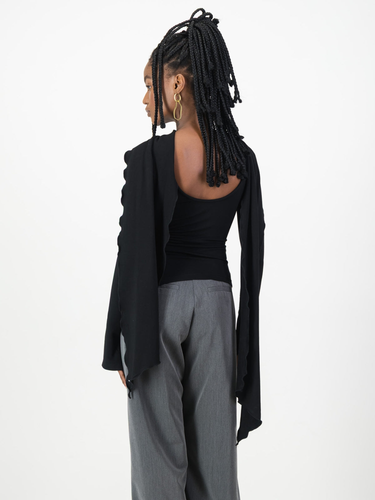 Dress from the waist up in this trophy top by South African label Rethread. Crafted from stretch viscose in limited batches, the reversible design lets you wear the scoop neckline in front or back, with the detachable scarf adding extra styling versatility. Finished with an asymmetric hem for dynamic flair— pair yours with tailored pants and denim alike.