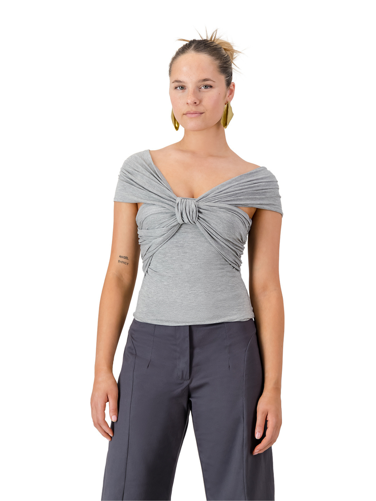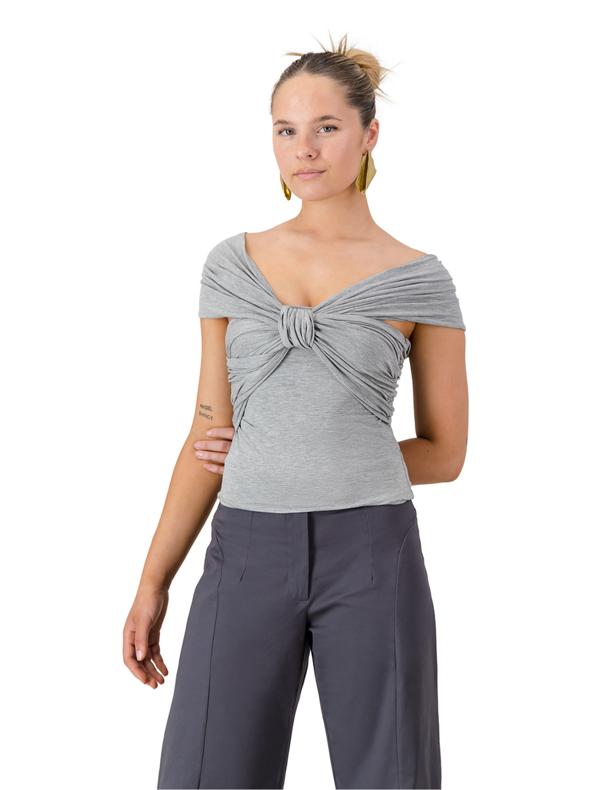 Grey Iris Wrap Top