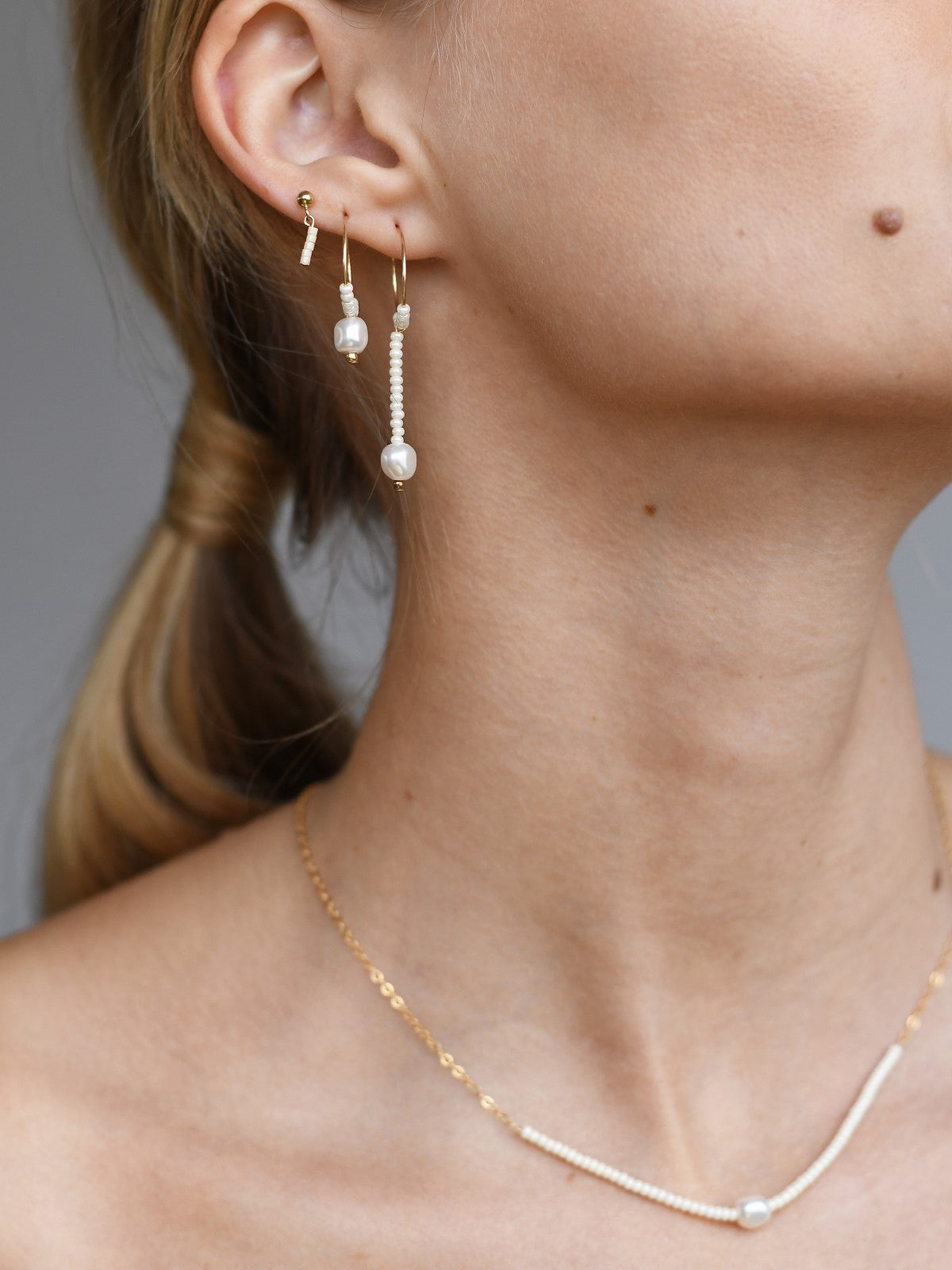 The Lulu Collection by Sidai Designs draws inspiration from the mystical powers of the moon. Handcrafted in Tanzania by female Maasai artisans, these earrings feature a delicate gold hoop strung with a mix of glass beads and lustrous Swarovski pearls. Wear yours daily to add a little luxury to casual outfits.
