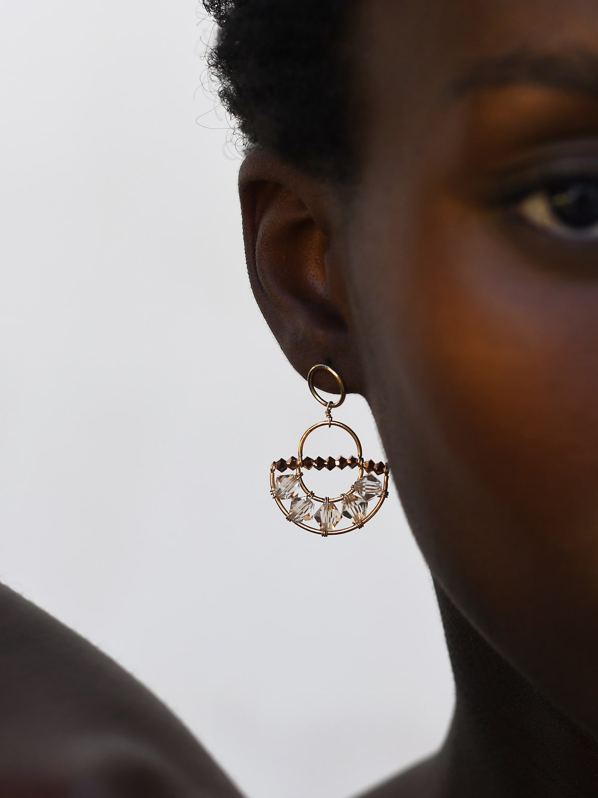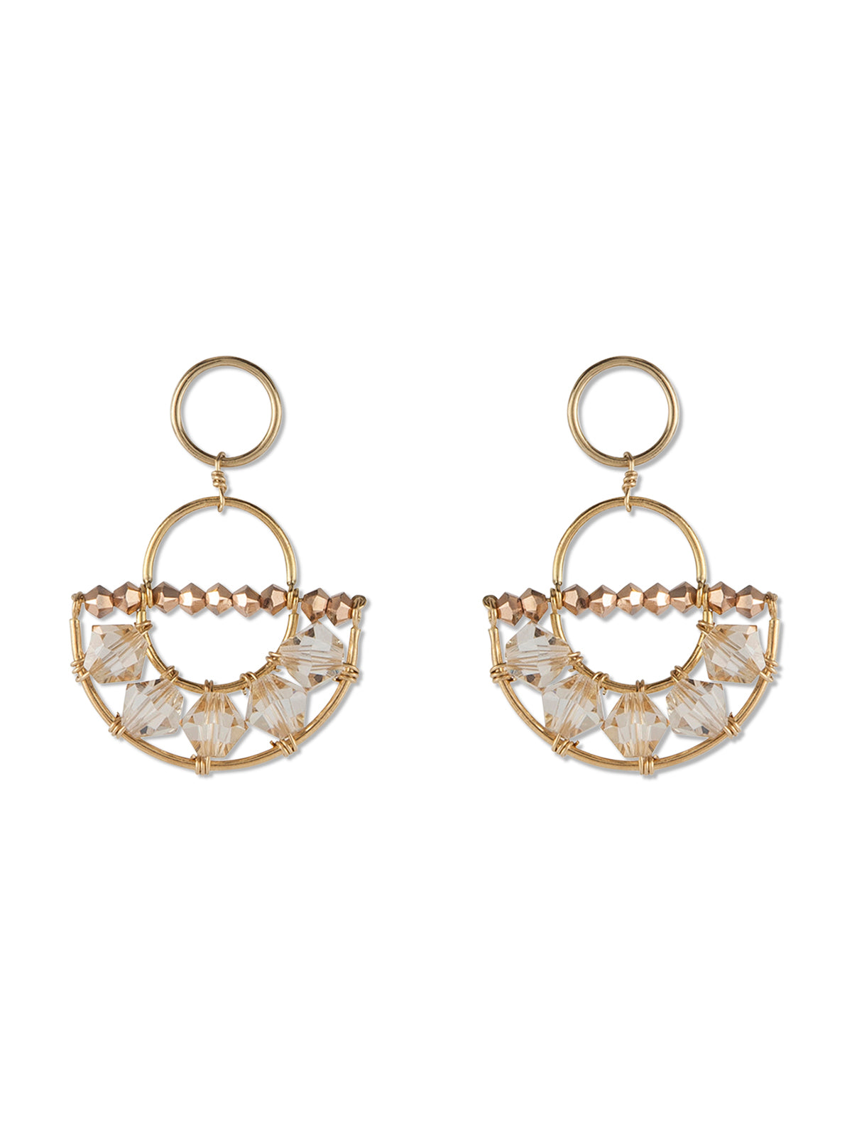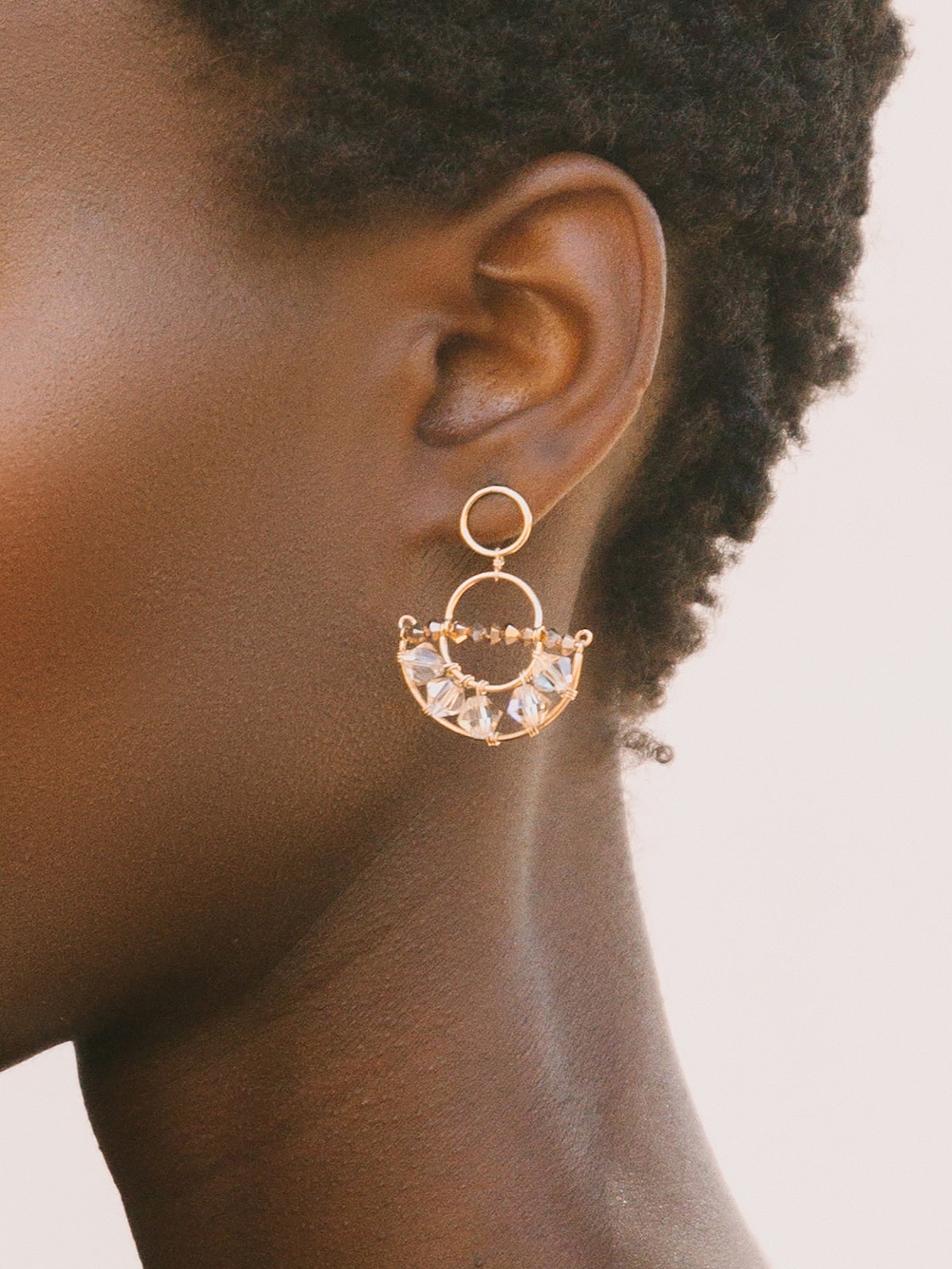 - 14-karat gold-filled circular stud fastening, glass beads, Swarovski crystals