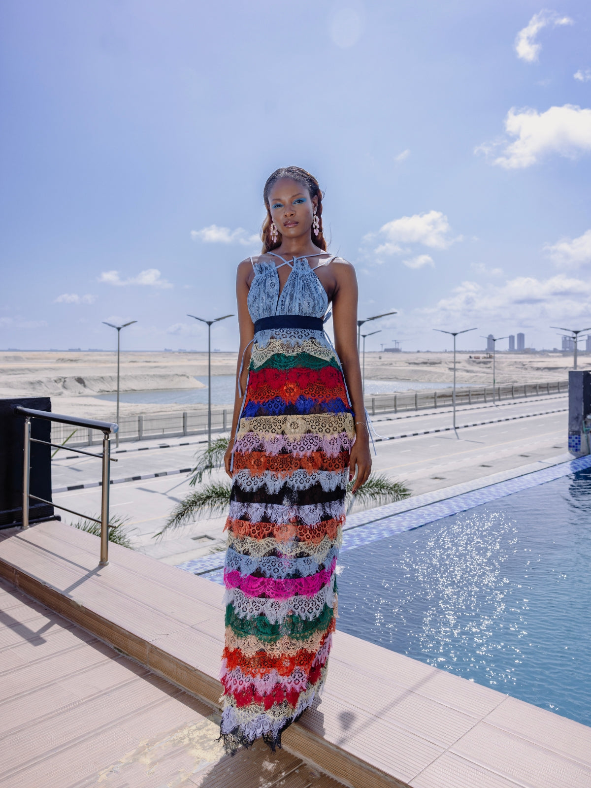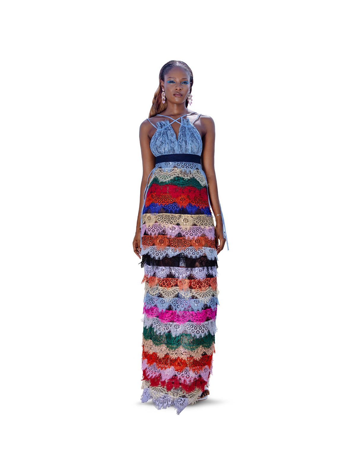 - Multi-layered lace hem panels crafted by hand in Lagos