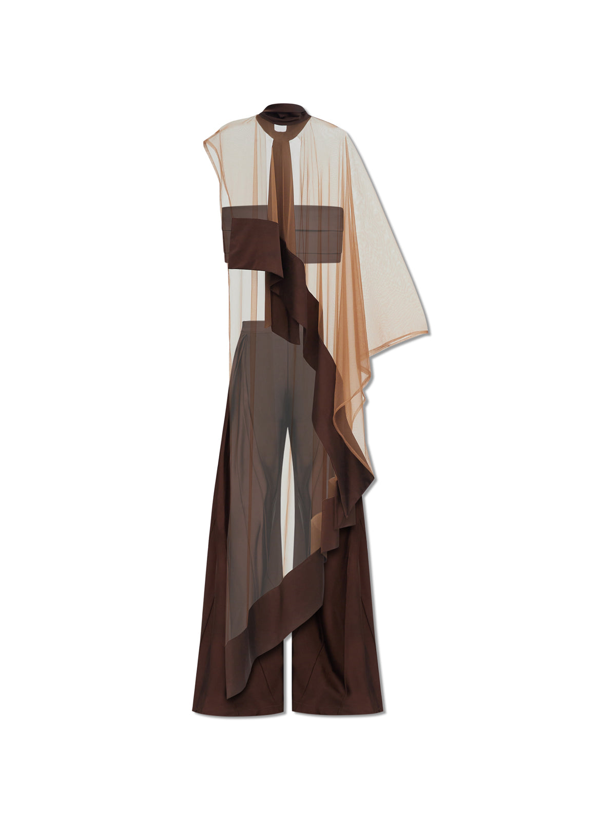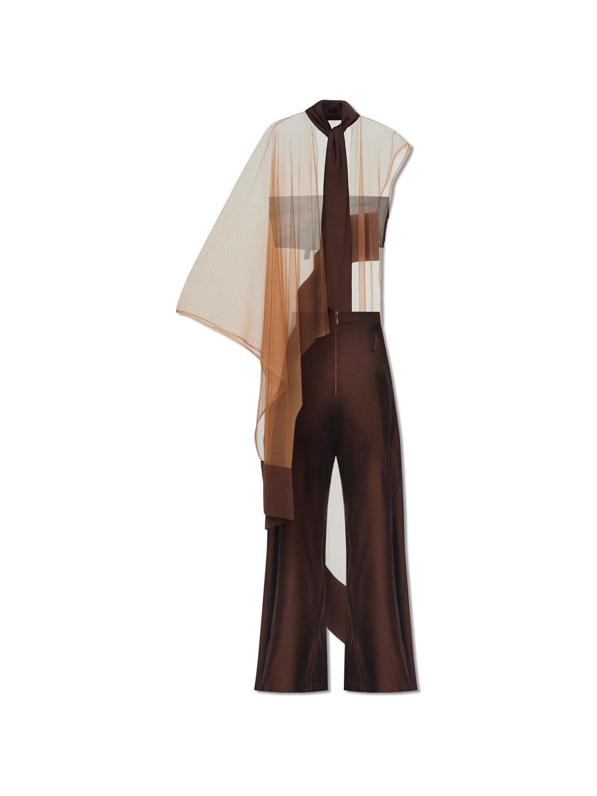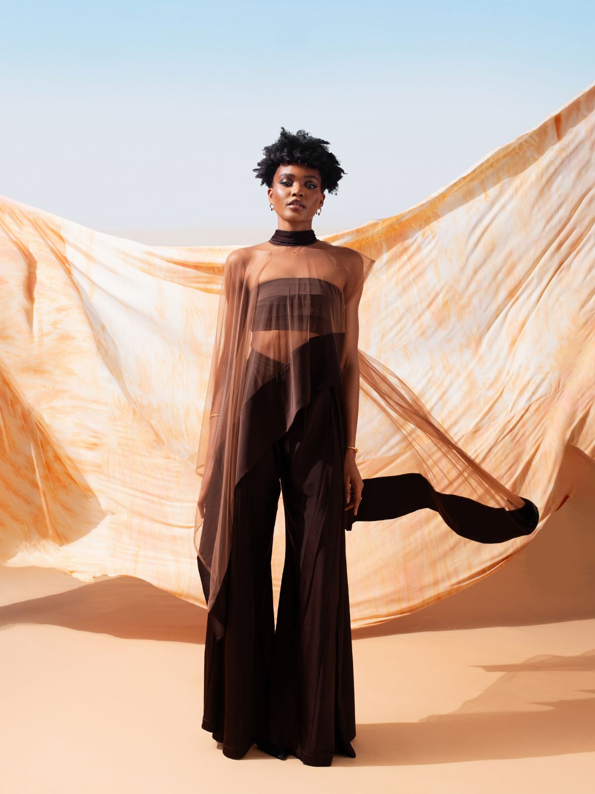 Sisiano is a name to know for simple and sculptural designs. This three-piece set comprises a bandeau top and high-waisted, sweeping wide-leg pants cut from weightless crepe polyester, paired with a diaphanous tulle polyester cape that takes the look up a notch. The classic black colorway promises endless styling options, while the brand’s meticulous craftsmanship ensures staying power. Wear them together or apart, and don’t be afraid to experiment with unexpected pairings.