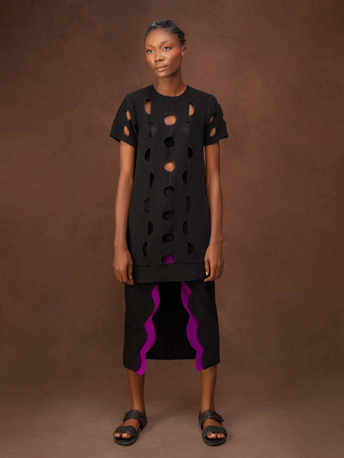 Nigerian twin sisters Sylvia Enekwe-Ojei and Olivia Enekwe-Okoji channel an inherited passion for artistry into their label, Gozel Green. Design codes leverage deconstruction, color blocking, linearity and asymmetry to create unexpectedly elegant silhouettes for the statement dresser. The twins see fashion as a tool for self expression, consciously creating modern pieces that empower the wearer to explore and celebrate various facets of her personality.