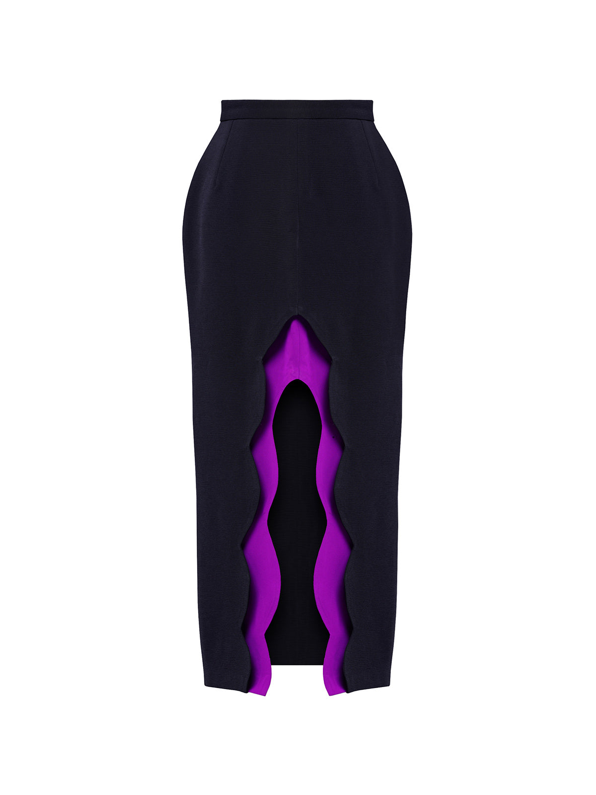 Part of Gozel Green’s SS’22 collection that celebrates creativity and individuality through fashion—this skirt will add a stylish pop of color to your wardrobe. The ladylike mid-length silhouette is made from lightweight crepe and has a flattering high waist, a front slit for ease of movement, and handcrafted scalloped edges. Ideal with a crisp cotton tee and espadrilles for daytime or stilettos at night.