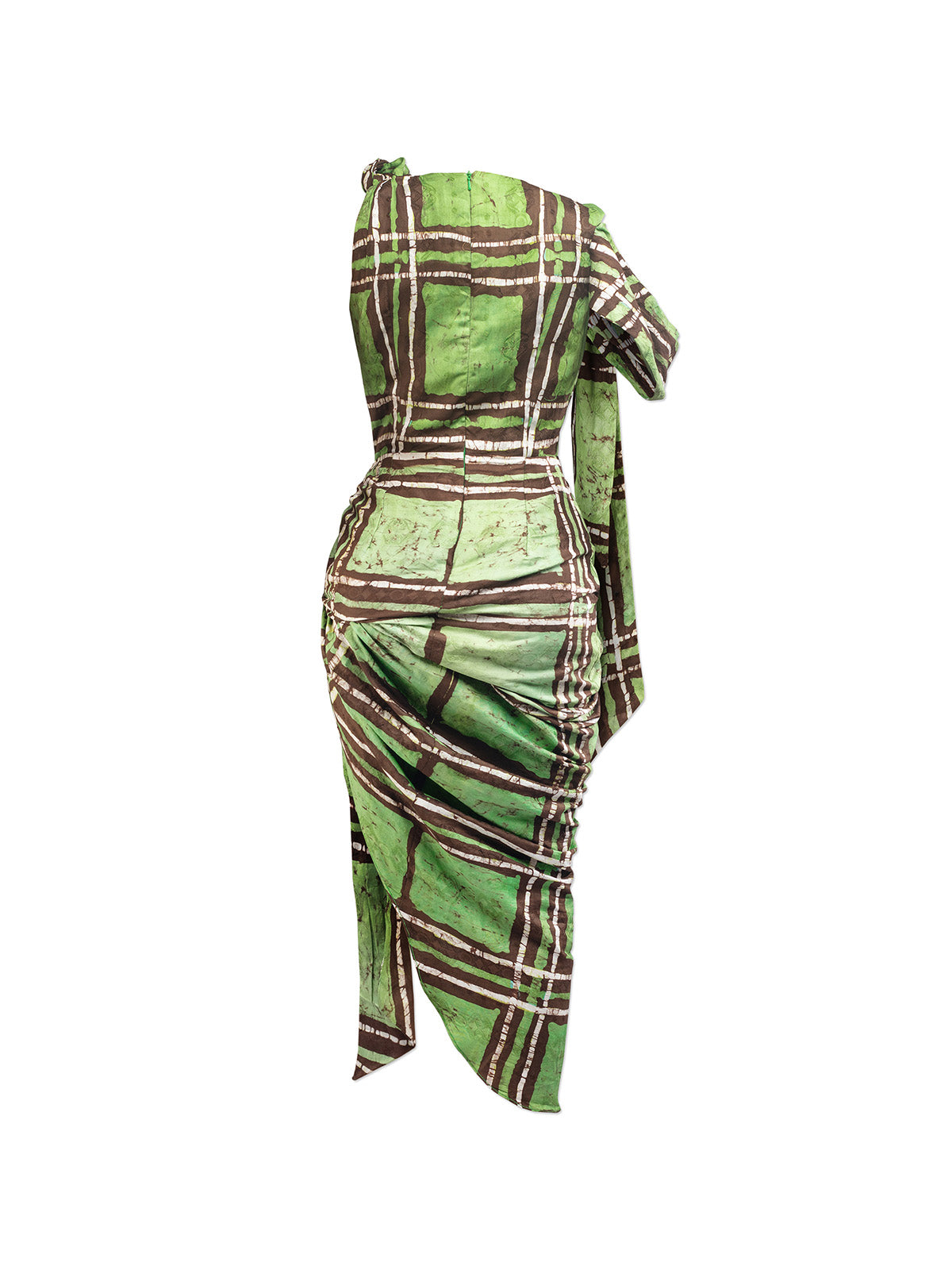 Fruché’s Taiwo Dress showcases the kind of artful draping the label is renowned for. It’s been made in Nigeria from hand-dyed cotton—produced by the Yoruba artisans, using a range of resist-dyeing processes. The asymmetric mid-length silhouette features sash-like ties that shape the waistline and the sleeve, offering the opportunity to create romantic bows. Save yours for special occasions and wear with statement pumps.