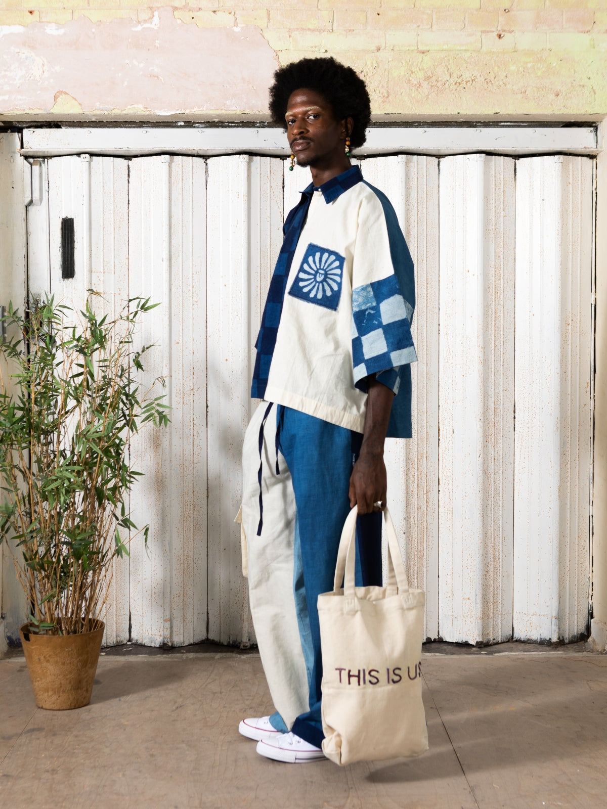 THIS IS US™ lends contemporary edge to traditional craft with the Boxy Lounge Shirt. Tailored in Lagos from hand-dyed Funtua cotton, it’s cut to a relaxed silhouette with an asymmetrical hemline, square chest pocket, and button-down fastening. The color-blocked panels nod to modern streetwear while honoring artisanal indigo dyeing techniques preserved at Kano’s centuries-old Kofar Mata pits. Pair yours with laidback cargo pants for a bold take on everyday dressing.