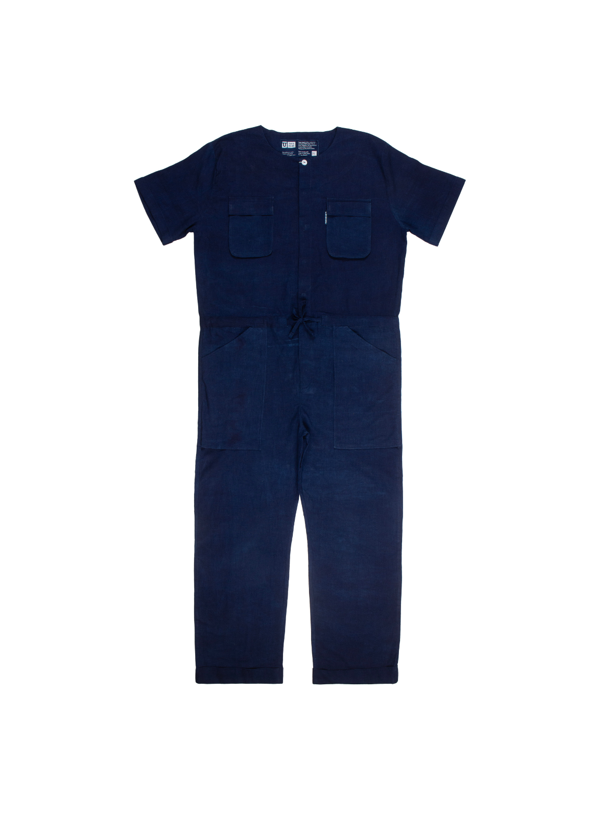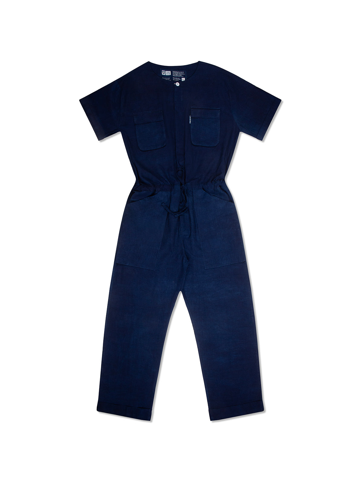 Jumpsuits are a great way to master workwear dressing with minimal effort. Crafted from hand-dyed Funtua cotton, THIS IS US™ style has utilitarian chest pockets and an adjustable drawstring to define your waist. It's complete with short sleeves and side pockets to keep essentials close. Style it by wearing it over a crisp white shirt and your favorite sneakers.
