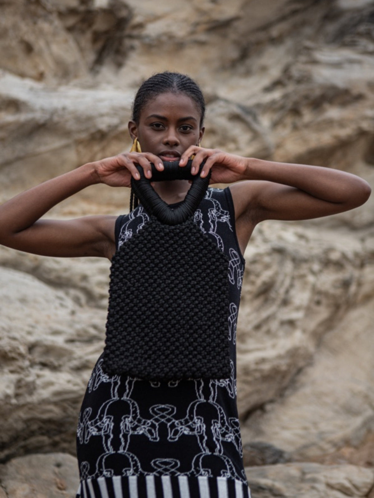 Born from one of Vanhu Vamwe’s cult favourites, the Rulani, the Mainty reinvents architectural craft through a triangular silhouette. Stripped of tassels but rich in texture, it’s a study in restraint—proof that minimalism can be deeply expressive. The triangular handle lends a modern edge to its artisanal roots. With every weave, Mainty pays homage to the brand’s philosophy: where structure meets soul.