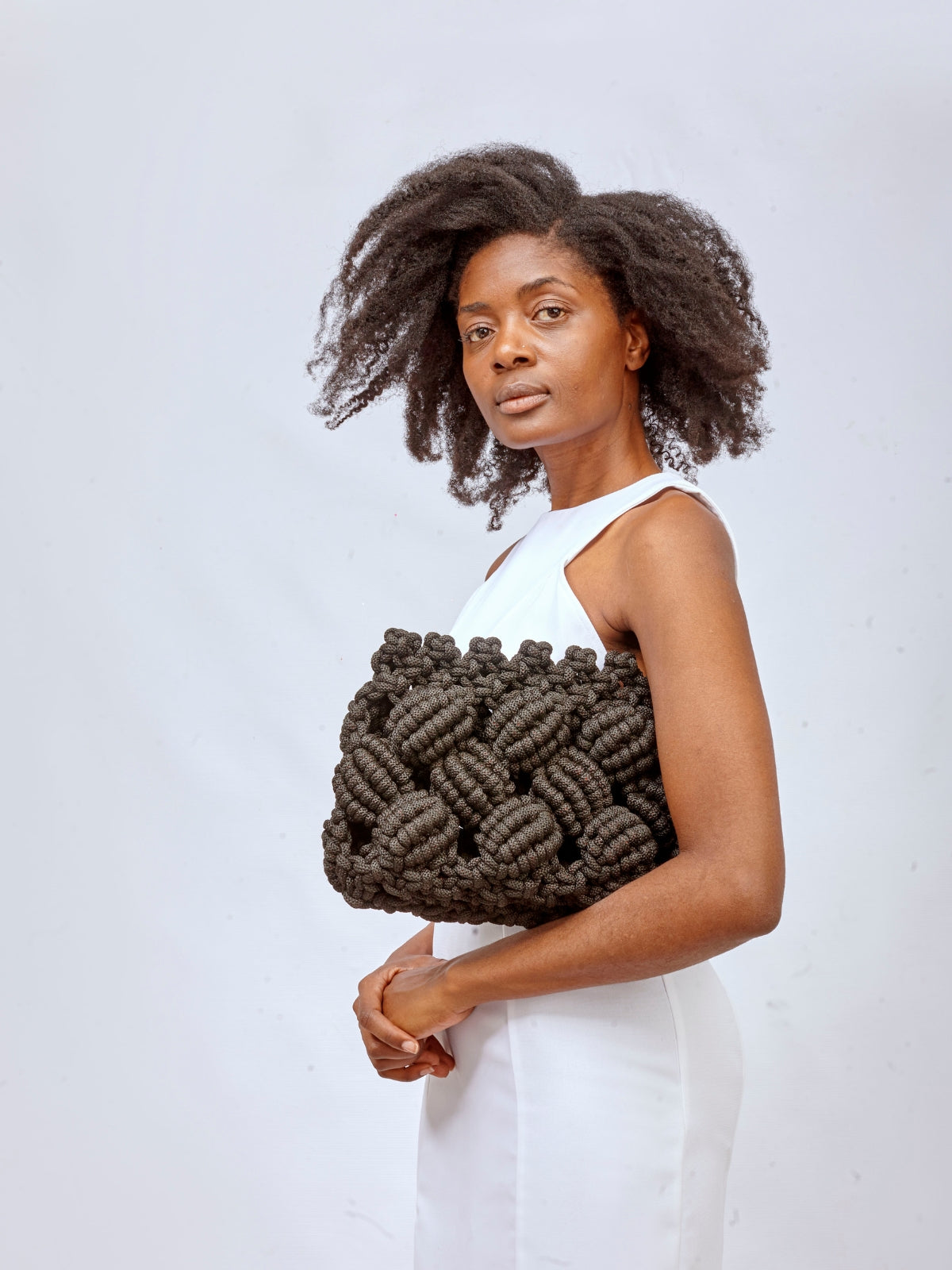 An ode to timeless craftsmanship, the Hideung Clutch embodies quiet power and enduring elegance. Its bold structure and tactile weave speak to Vanhu Vamwe’s mastery of macramé—where form, texture, and heritage converge. Designed to outlast fleeting trends, it’s a bag that invites conversation and commands presence. With every knot, it carries the hands and stories of Zimbabwe’s artisanal community, crafting modern heirlooms from recycled paracord.